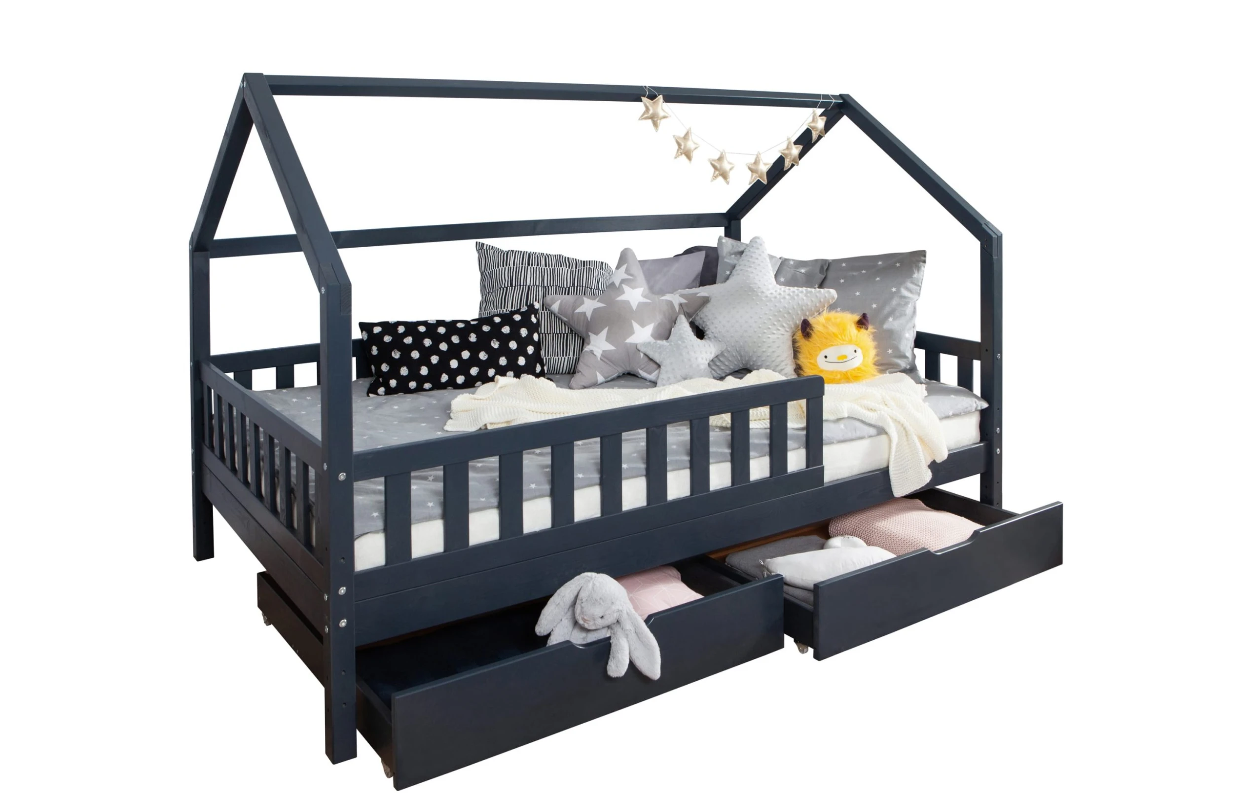 Lieferumfang: Hausbett inkl. Rollrost und 2 Schubkästen, Montagematerial und Montageanleitung (ohne Matratze und Dekoration)