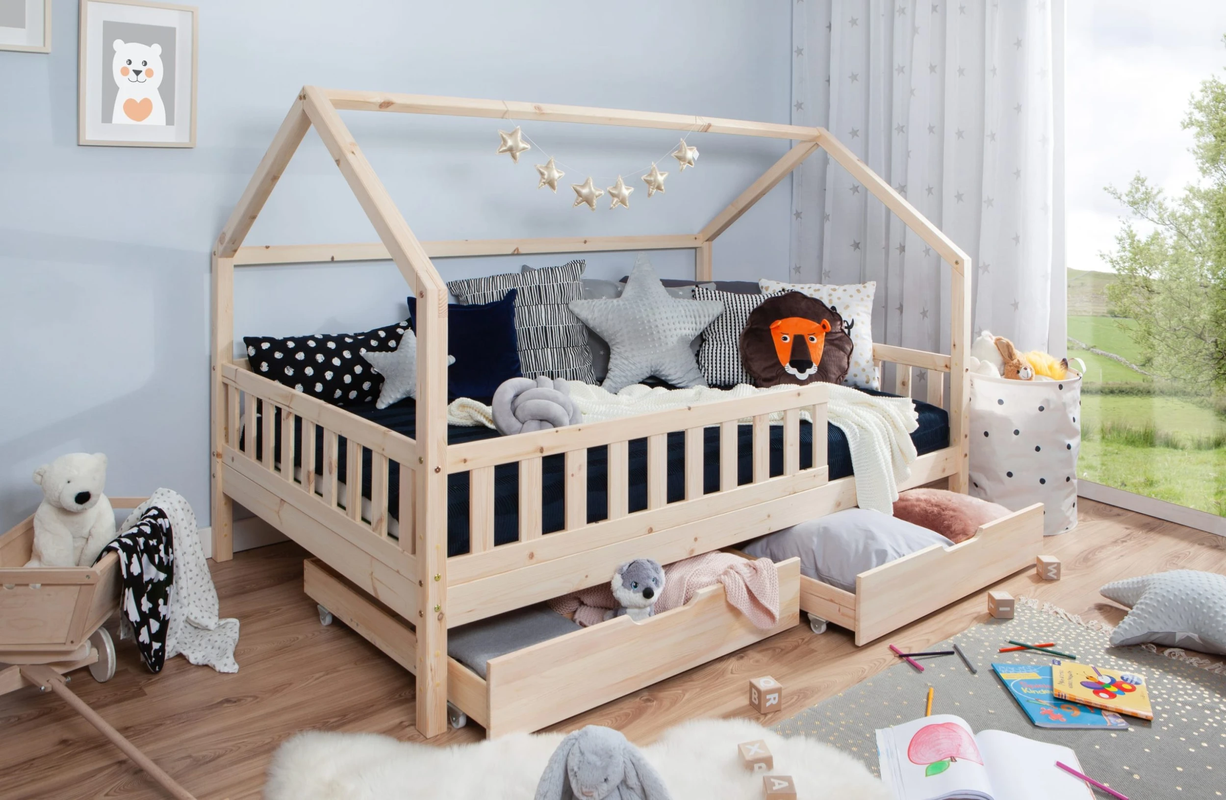 Lieferumfang: Hausbett inkl. Rollrost und 2 Schubkästen, Montagematerial und Montageanleitung (ohne Matratze und Dekoration)