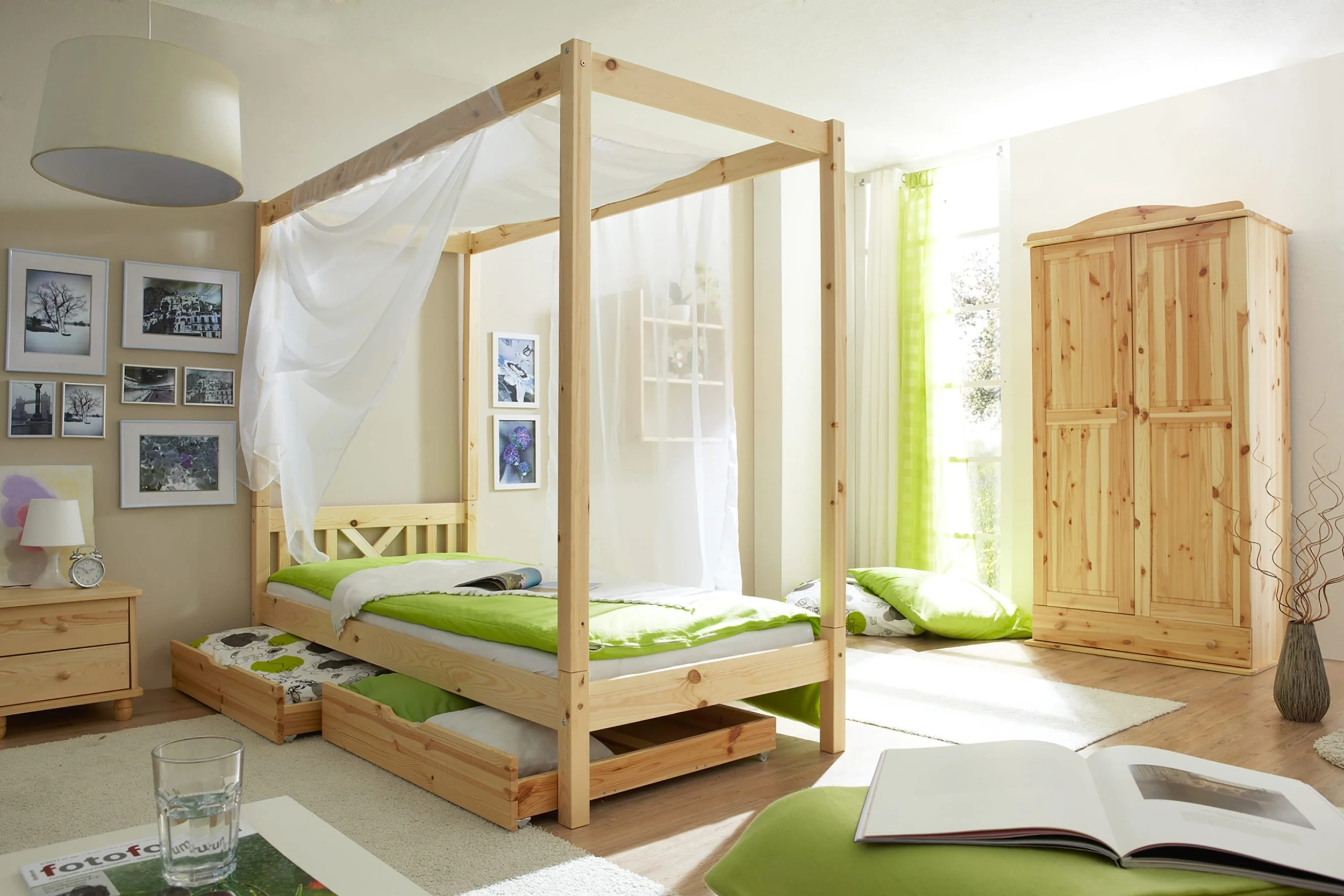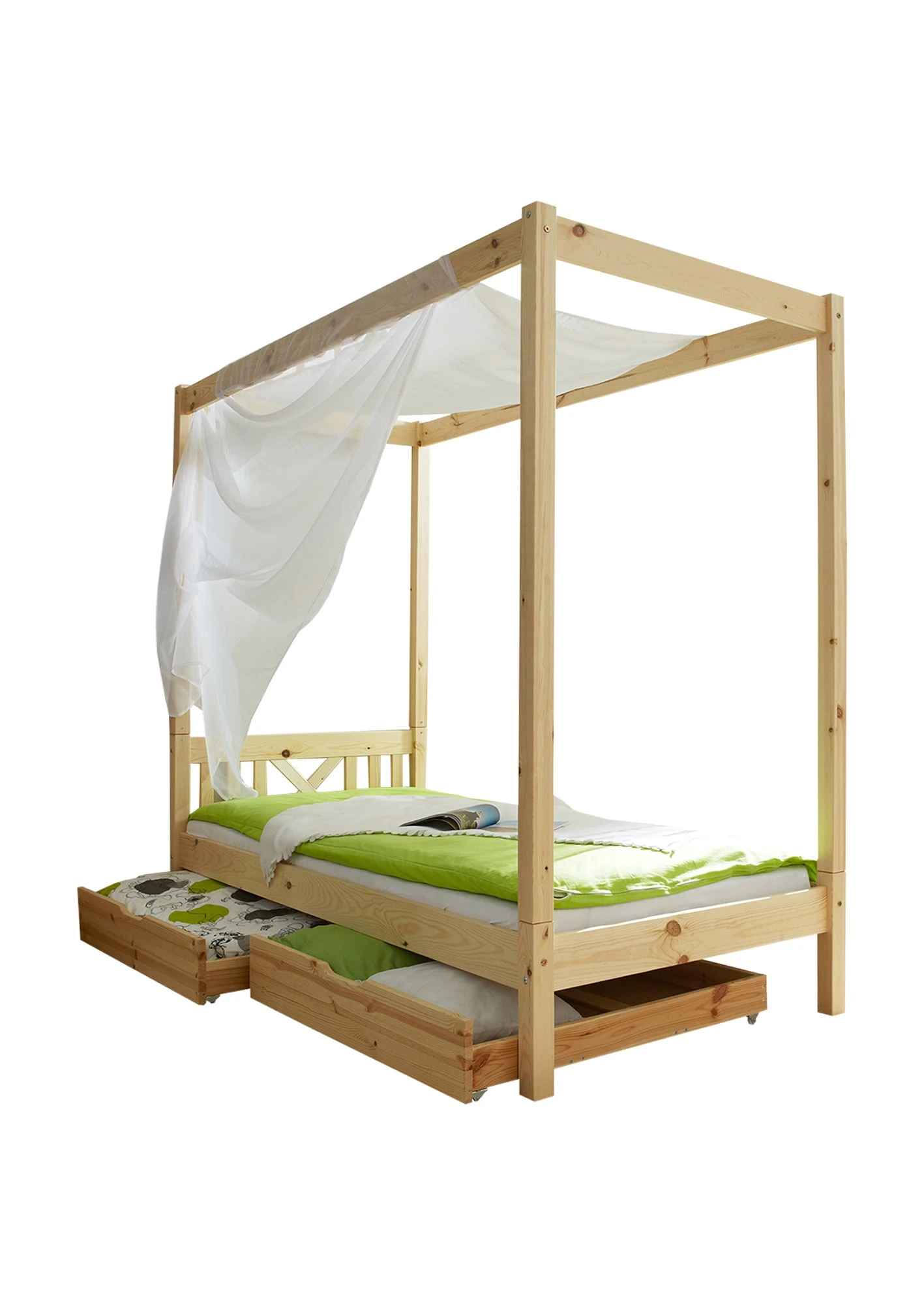 Lieferumfang: Himmelbett, Montagematerial und Montageanleitung (ohne Matratze, Rollrost, Schubkästen und Dekoration)