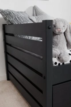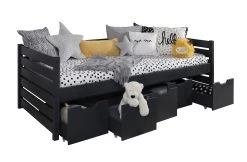 Das Sofabett “Naomi” eignet sich ideal für Jugend- und Gästezimmer. Nachts bietet das Bett eine gemütliche Liegefläche und genügend Platz, tagsüber eine komfortable Sitzgelegenheit. 5x praktische Schubkästen auf Rollen unter dem Bett sorgen für zusätzlichen Stauraum.
