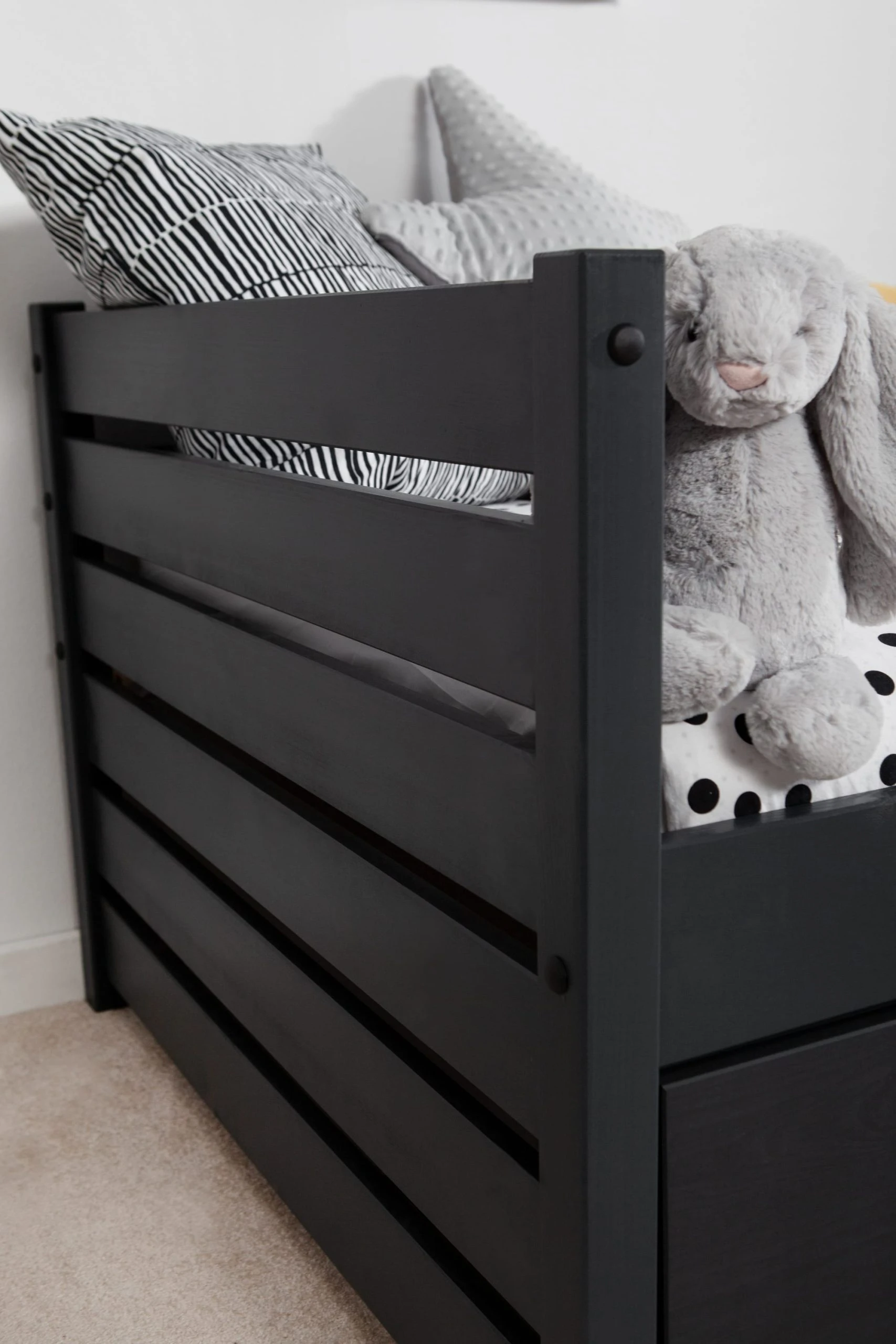 Lieferumfang: Sofabett inkl. 5x Schubkästen, Montagematerial und Montageanleitung (ohne Rollrost und Matratze)