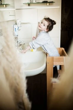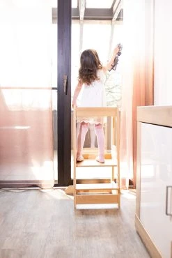 Als praktisches Hilfsmittel im Alltag mit Kind bietet der Lernturm besonders sicheren Stand und Kindern im Alter von 1-4 Jahren angemessene Bewegungsfreiheit.