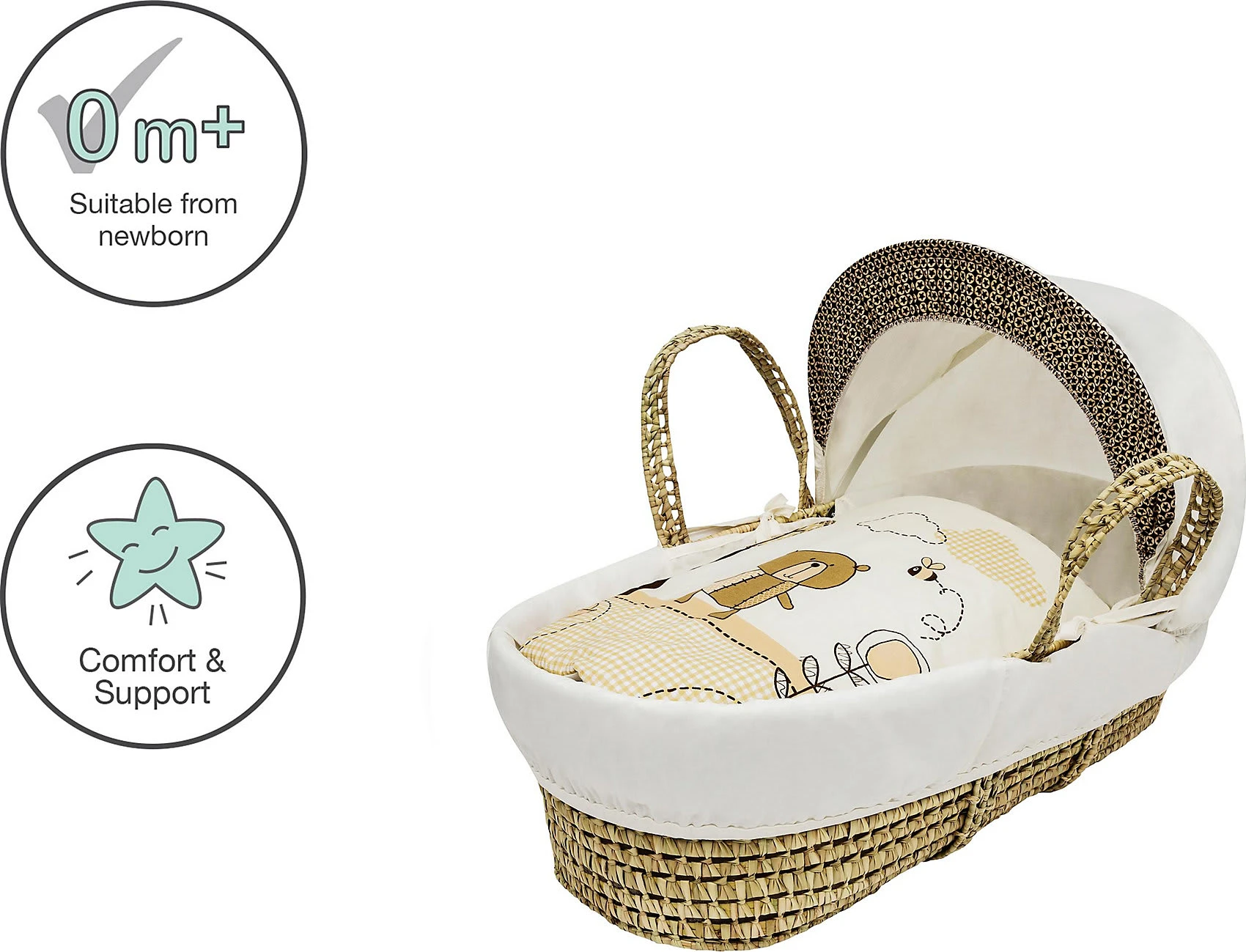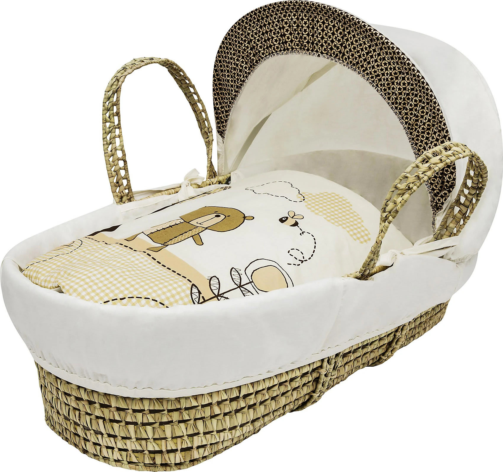 Mit diesem bezaubernden Urra Moseskorb kommt ein toller Alltagshelfer für die ersten Monate in Babys Leben. Der Korb ist mit einem schützenden Verdeck und einem stabilen Boden ausgestattet und kann mit den Handgriffen einfach getragen werden. Das umfangreiche Zubehör mit Matratze, einer kleinen gesteppten Bettwäsche und einem Korb-Bezug aus Baumwolle macht das Set perfekt.