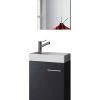 Das moderne Set besteht aus einem Waschbecken mit Waschbeckenunterschrank sowie einem Eckspiegel und bietet die perfekte Einrichtungslösung für WCs oder auch Gästetoiletten.