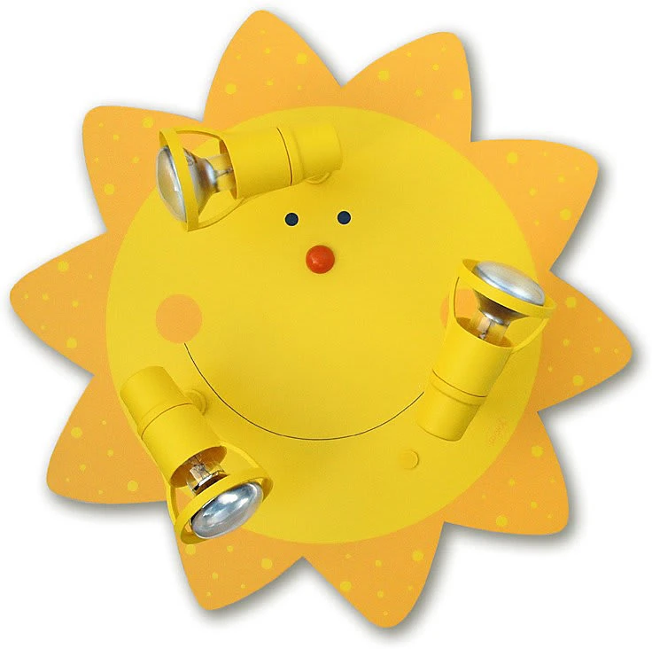 Die Deckenlampe in Form einer fröhlichen Sonne setzt gekonnt Leuchtakzente im Kinderzimmer. Die drei Strahler fügen sich hervorragend in das Bild der Lampe ein und lassen das Zimmer hell erstrahlen.