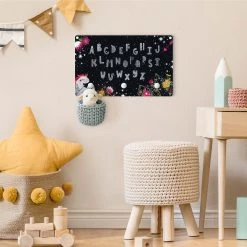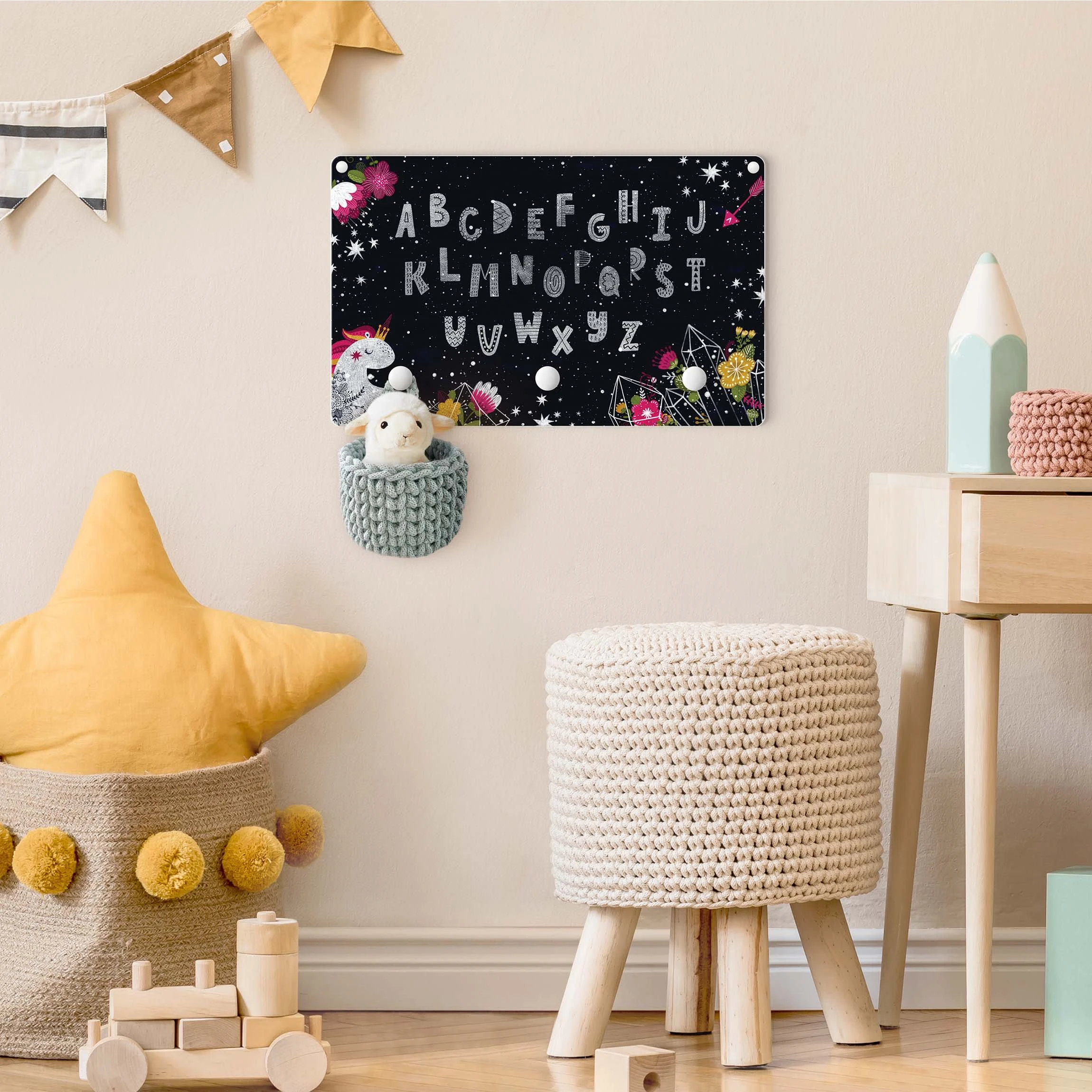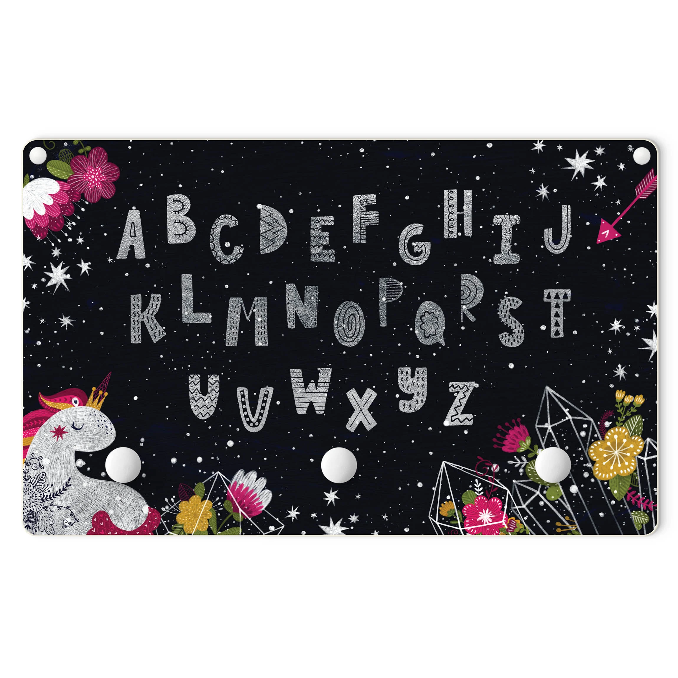 WallArt Kindergarderobe Holz – Alphabet Mit Einhorn Und Kristallen In Schwarz