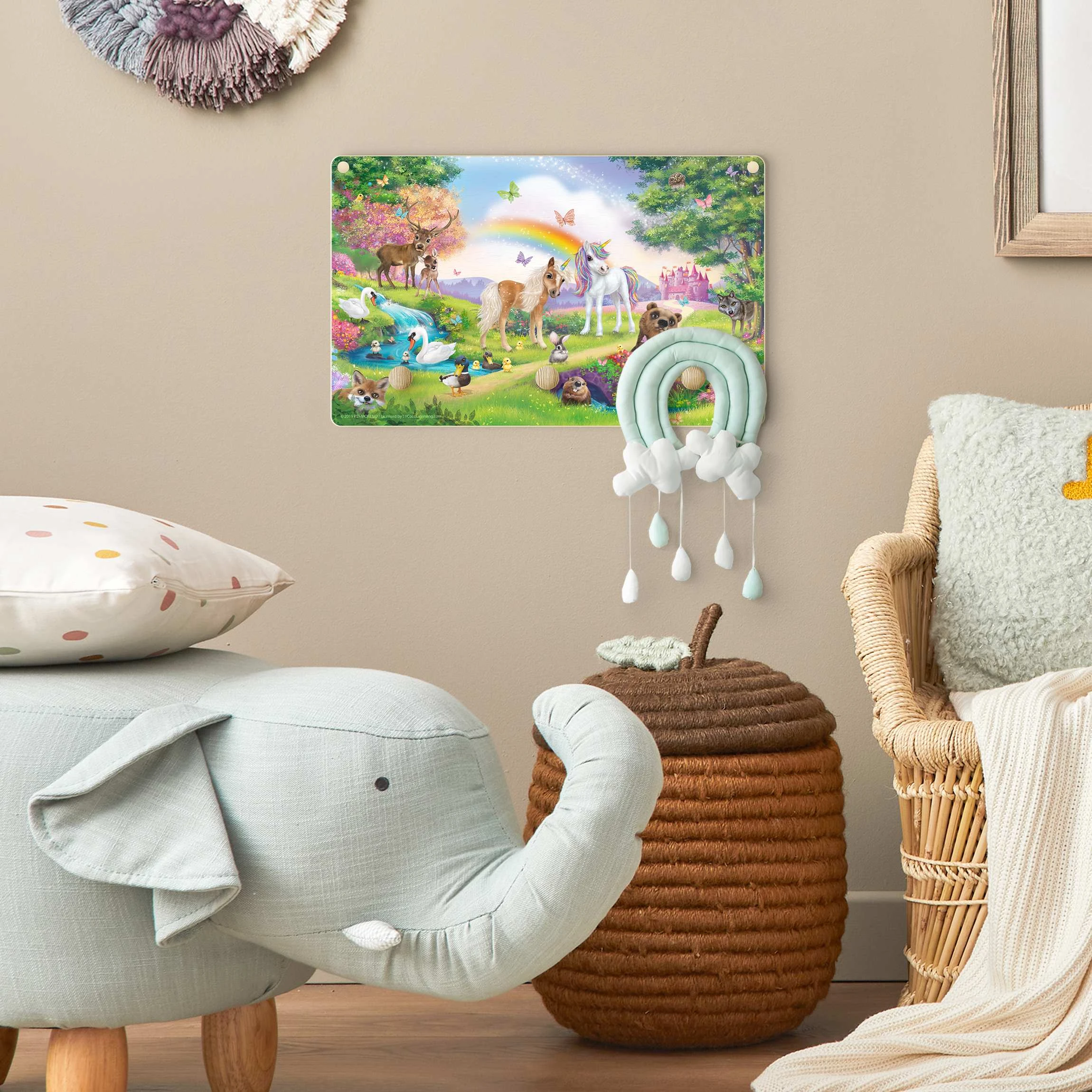 WallArt Kindergarderobe Holz – Animal Club Int. – Einhorn -Wald In Bunt