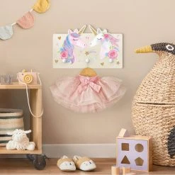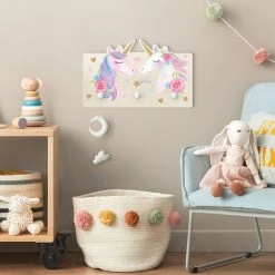 WallArt Kindergarderobe Holz – Aquarell Einhorn Gold Glitzer In Pastell
