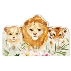 WallArt Kindergarderobe Holz – Aquarell Raubkatzen Tiger Löwen In Orange