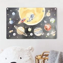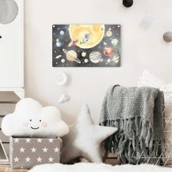 WallArt Kindergarderobe Holz – Aquarell Unser Planetensystem In Bunt