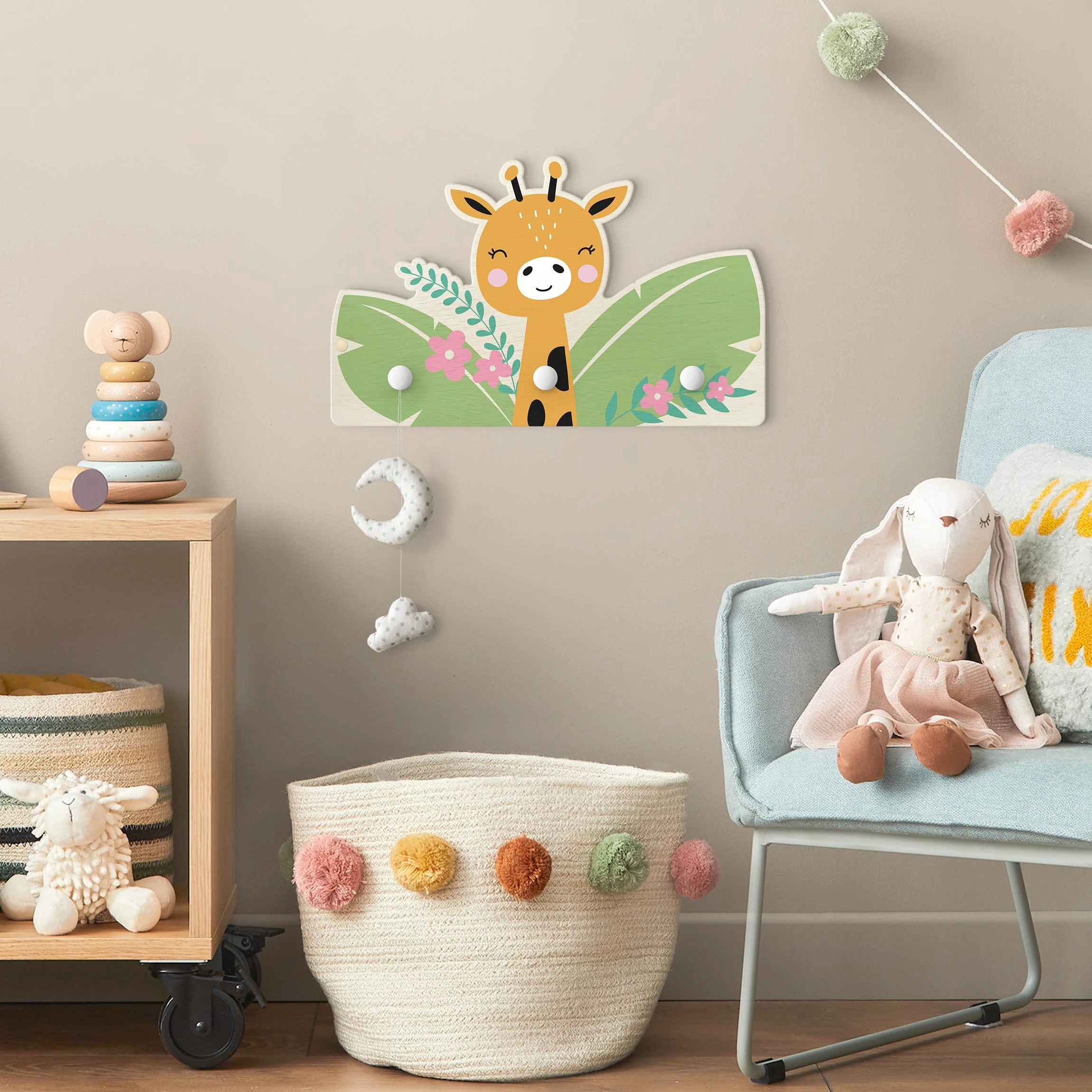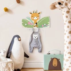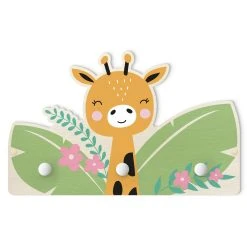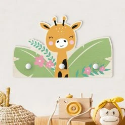 WallArt Kindergarderobe Holz – Babygiraffe Im Dschungel In Grün
