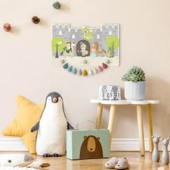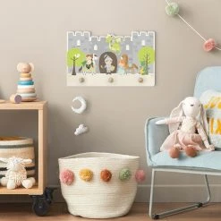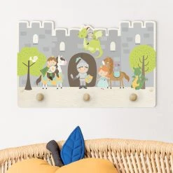 WallArt Kindergarderobe Holz – Burg Ritter Drachen Prinzen Prinzessin In Bunt