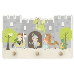 WallArt Kindergarderobe Holz – Burg Ritter Drachen Prinzen Prinzessin In Bunt