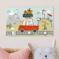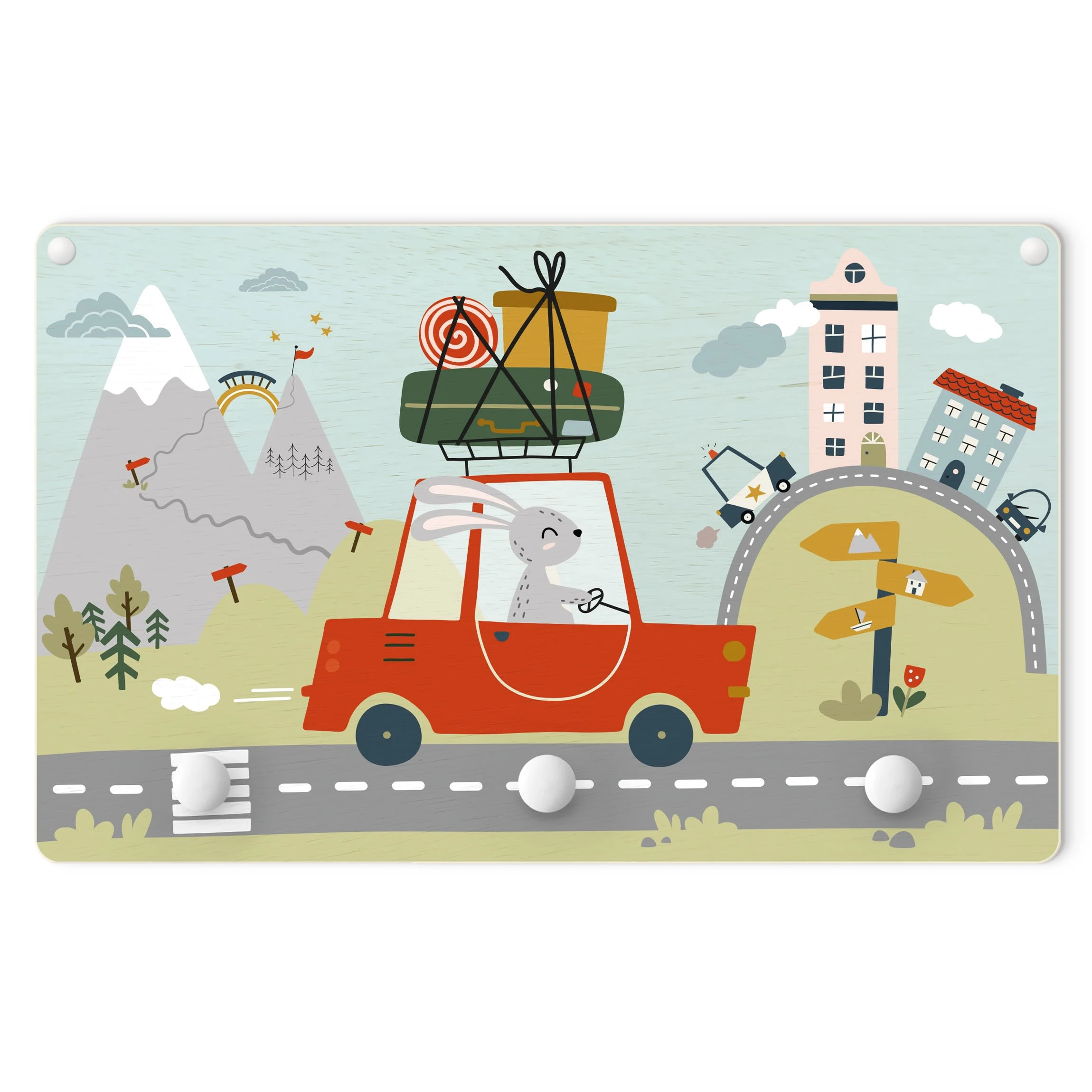 WallArt Kindergarderobe Holz – Der Umzugshase In Bunt