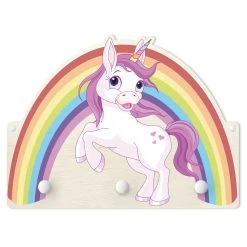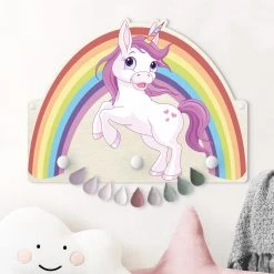 WallArt Kindergarderobe Holz – Einhorn Regenbogen In Pastell