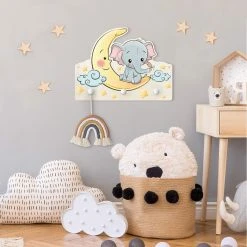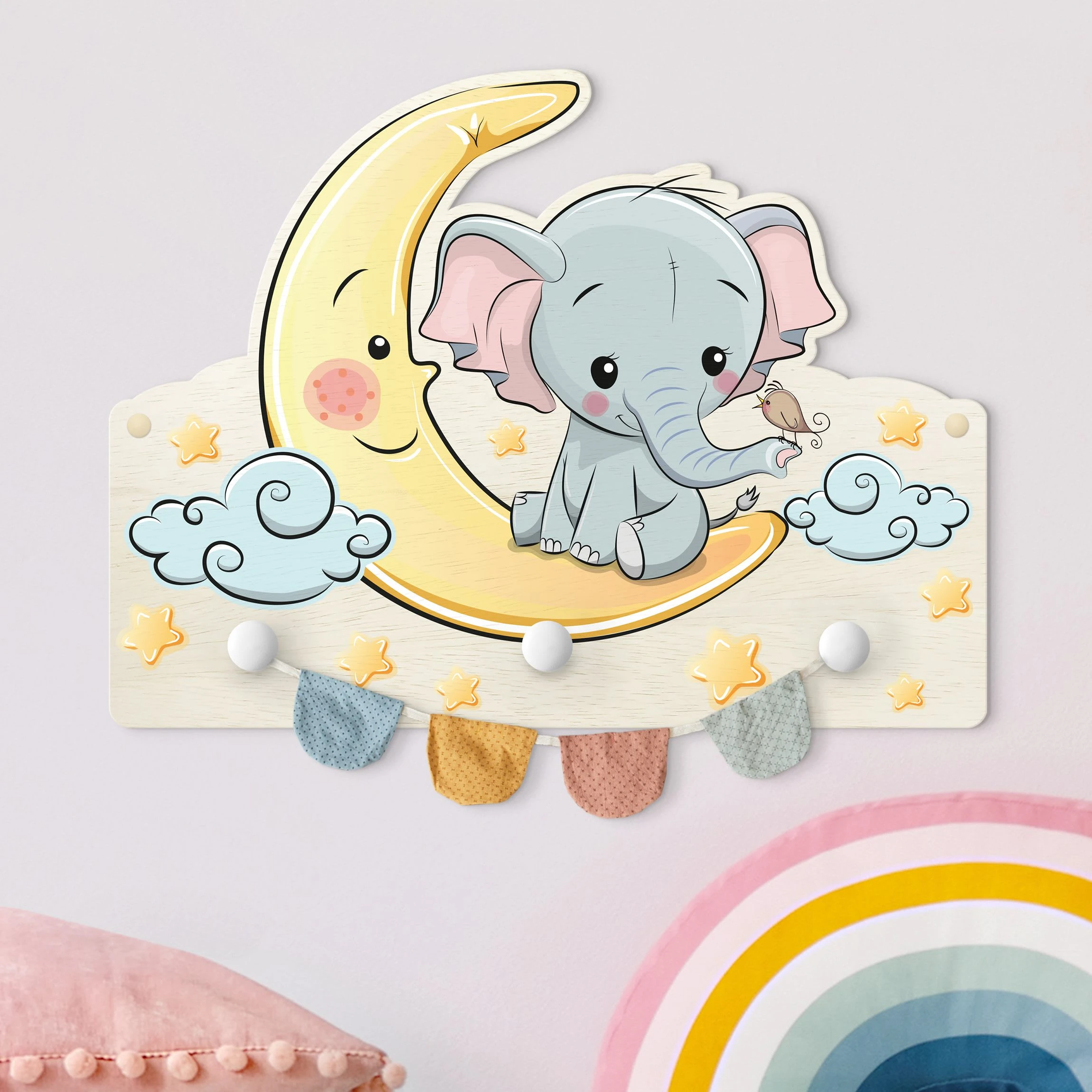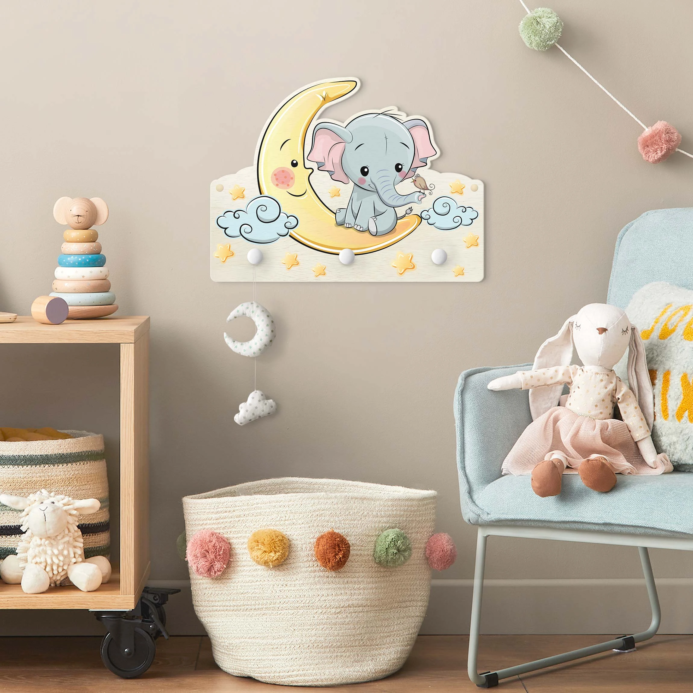 WallArt Kindergarderobe Holz – Elefant Mond In Grau