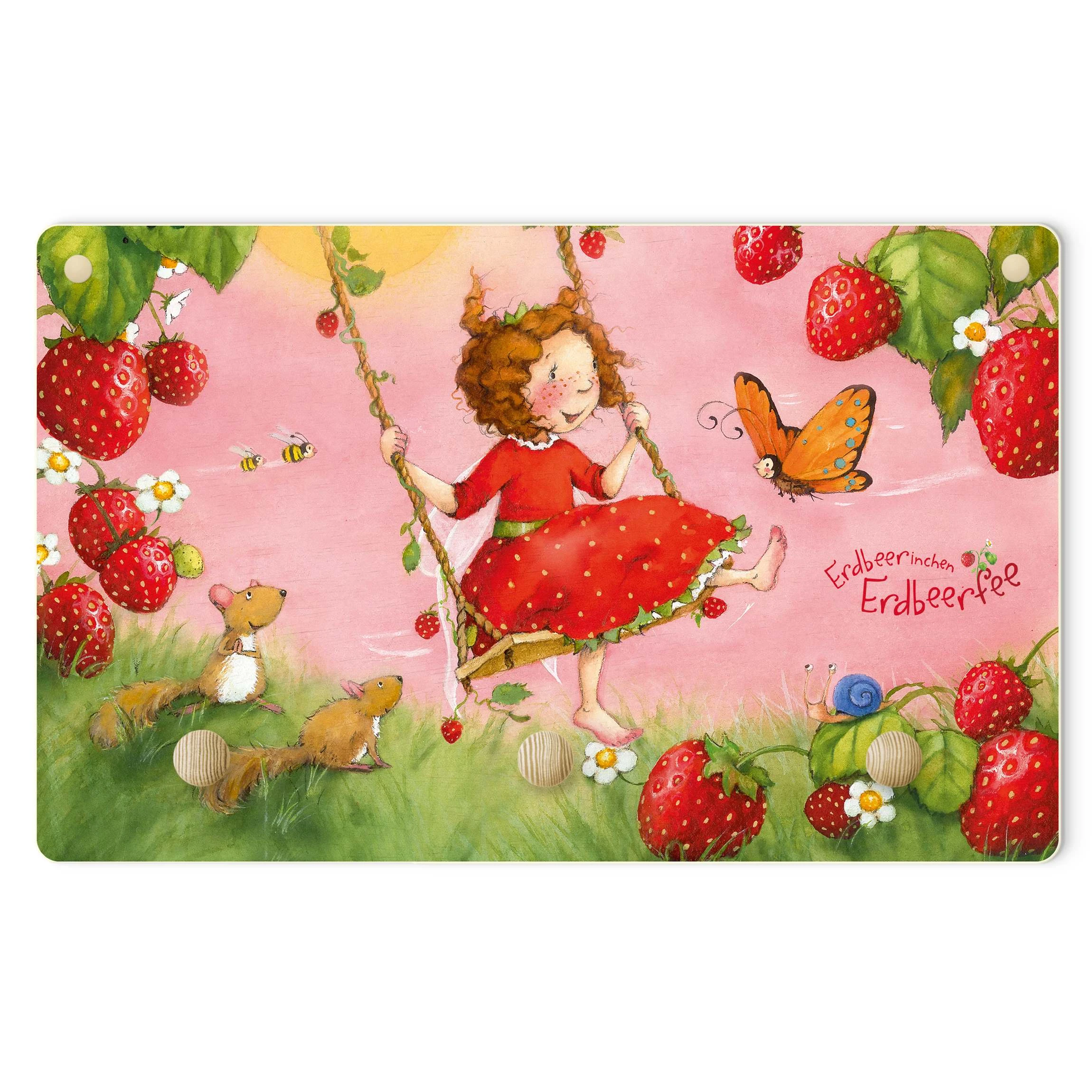 WallArt Kindergarderobe Holz – Erdbeerinchen Erdbeerfee – Baumschaukel In Rosa