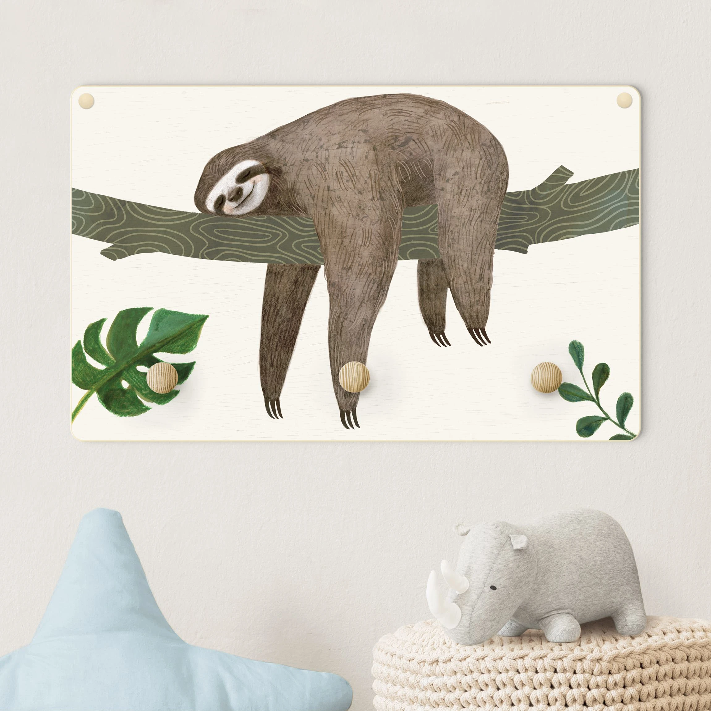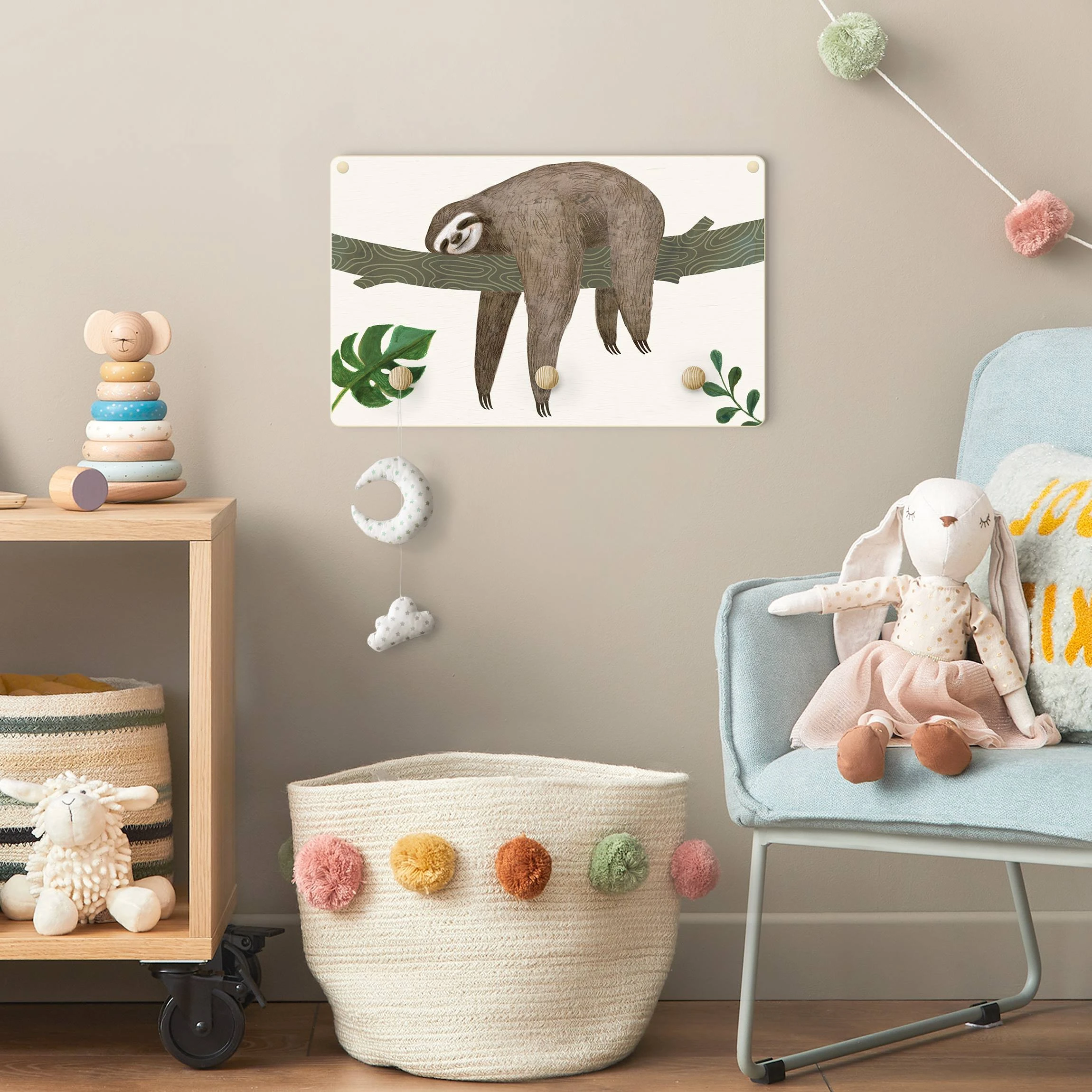 WallArt Kindergarderobe Holz – Faultier Sprüche – Chill In Creme-Beige