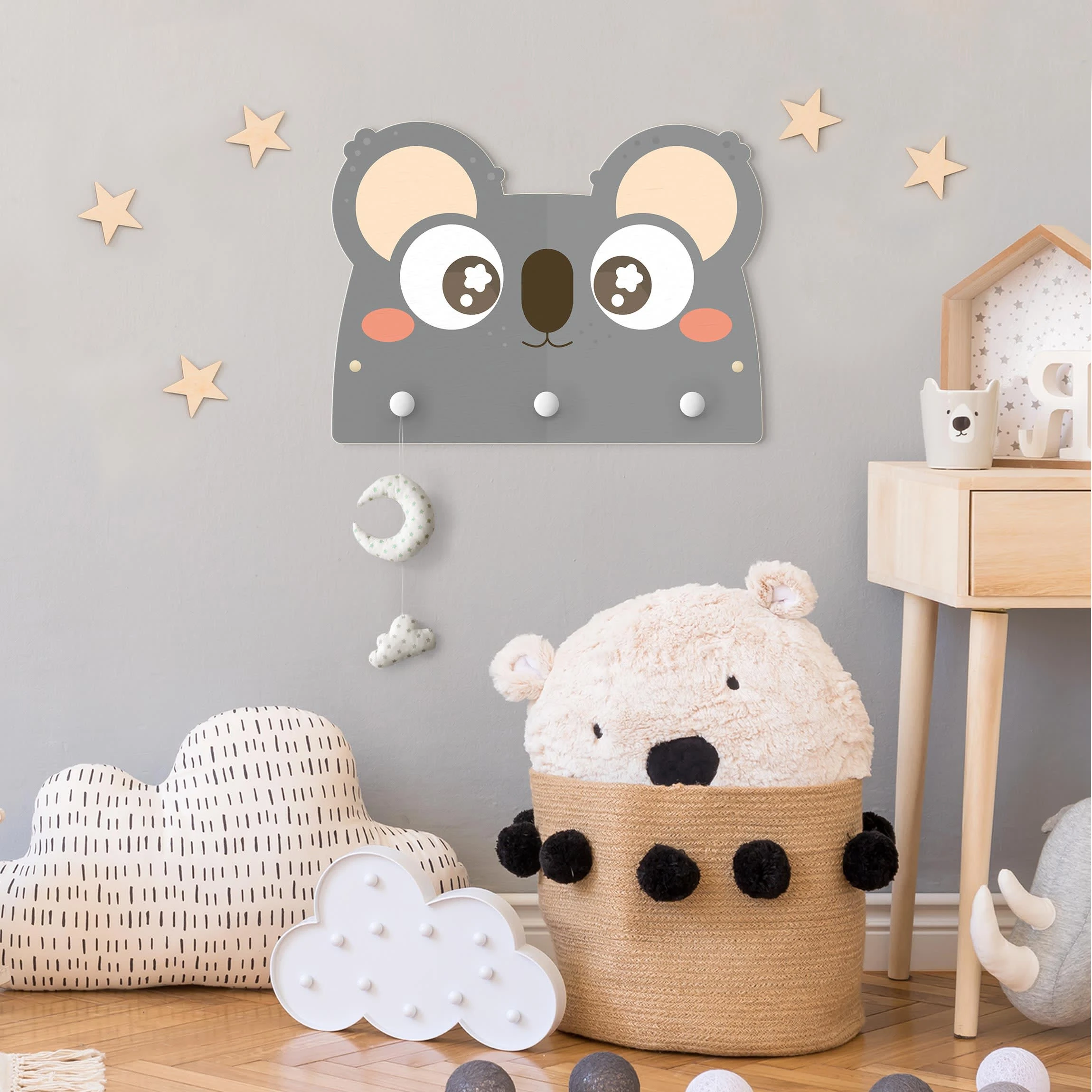WallArt Kindergarderobe Holz – Frau Koala In Grau