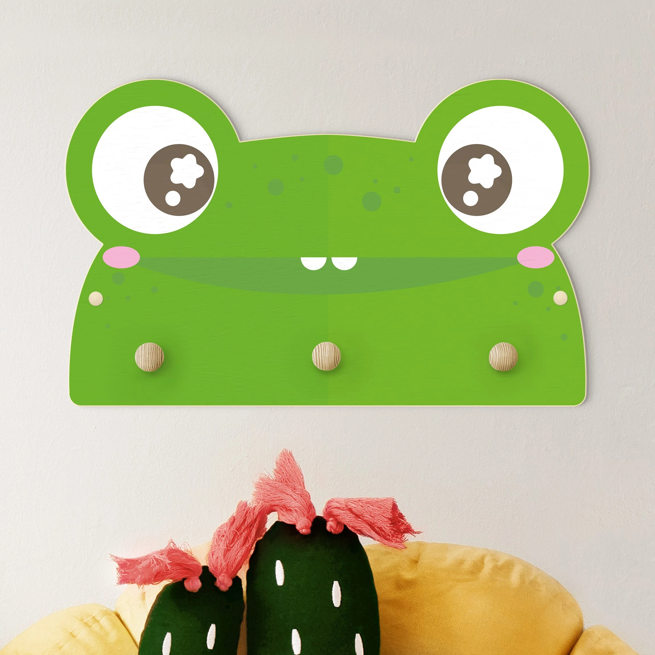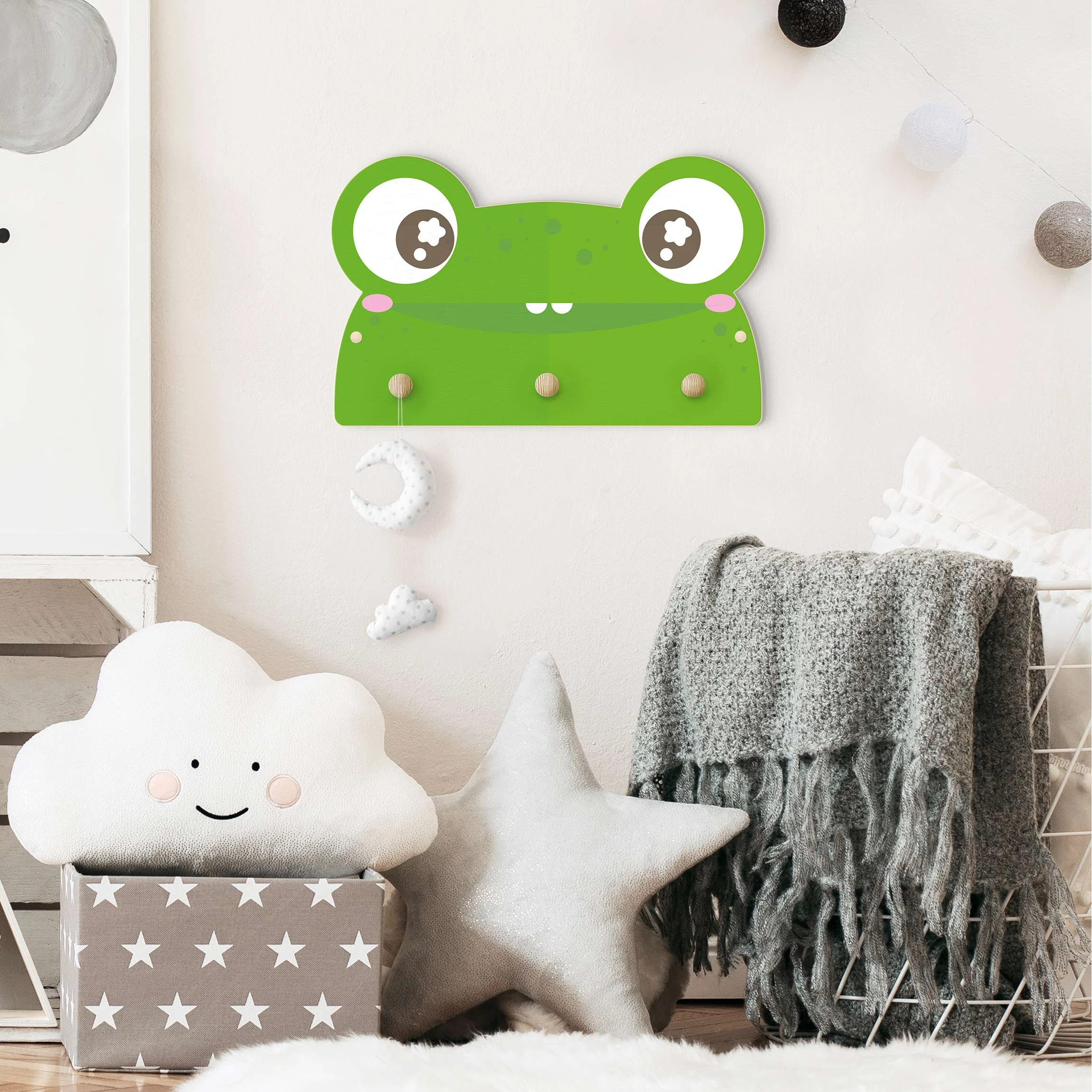 WallArt Kindergarderobe Holz – Frecher Frosch In Grün