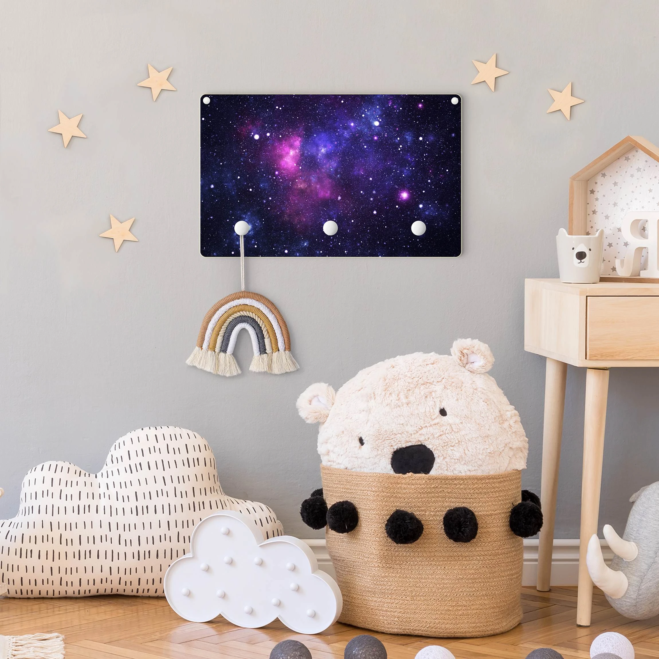 WallArt Kindergarderobe Holz – Galaxie In Violett