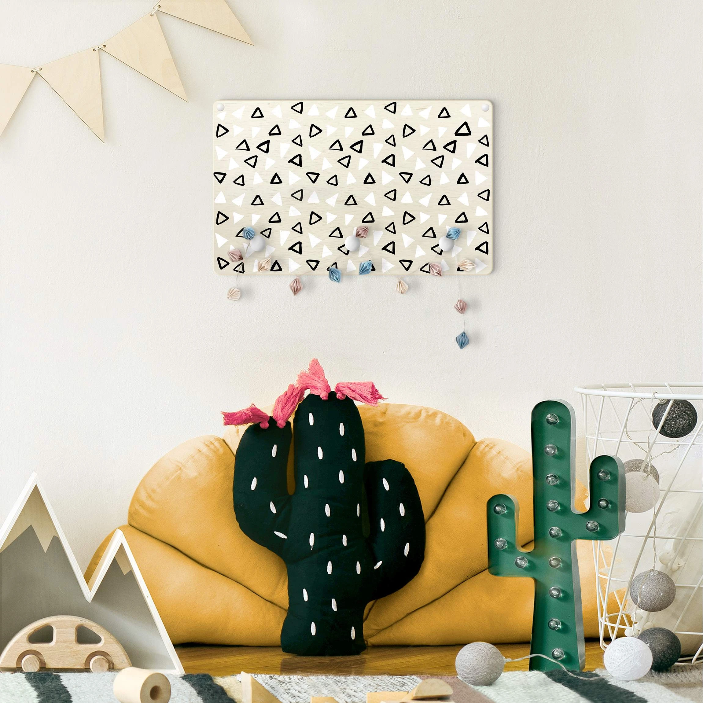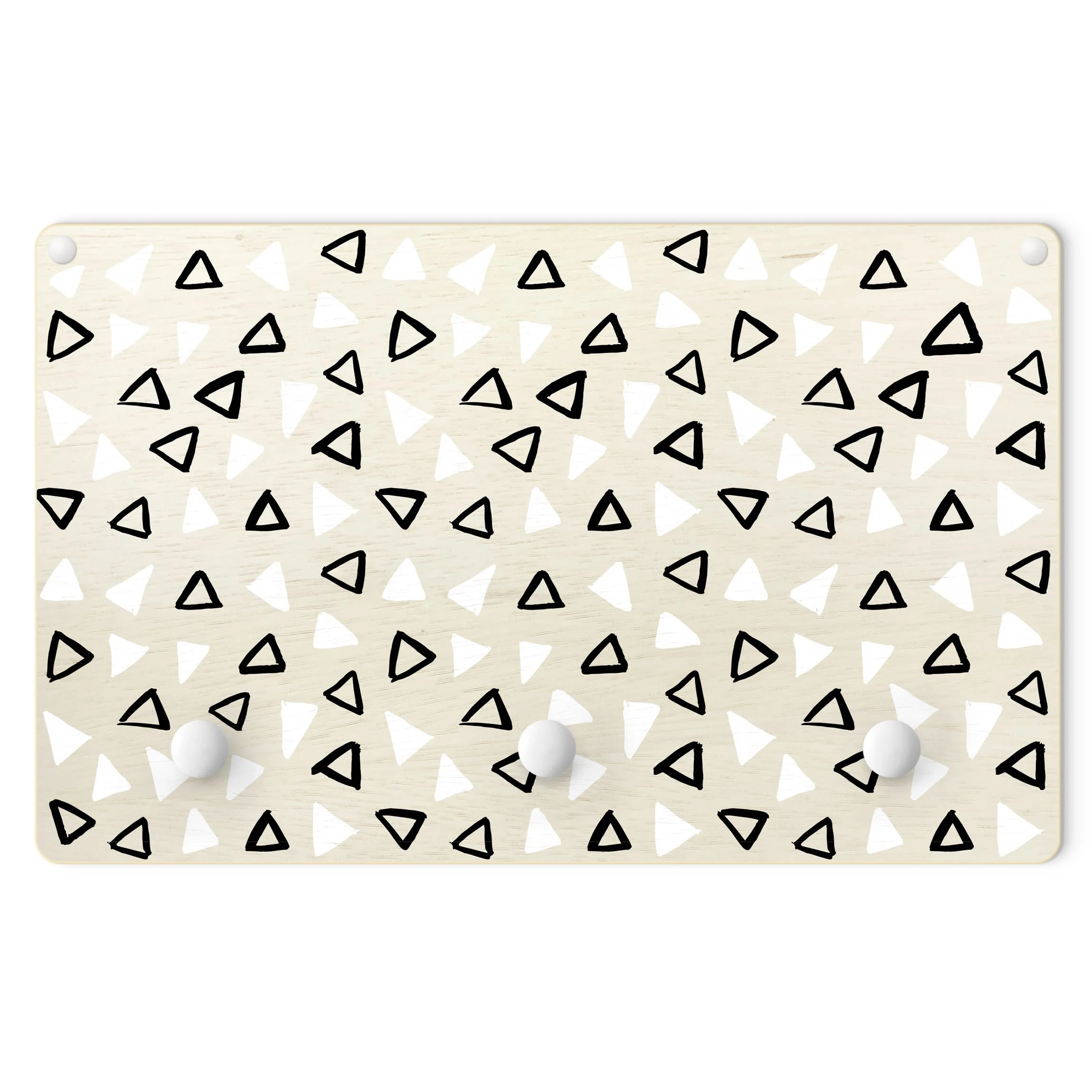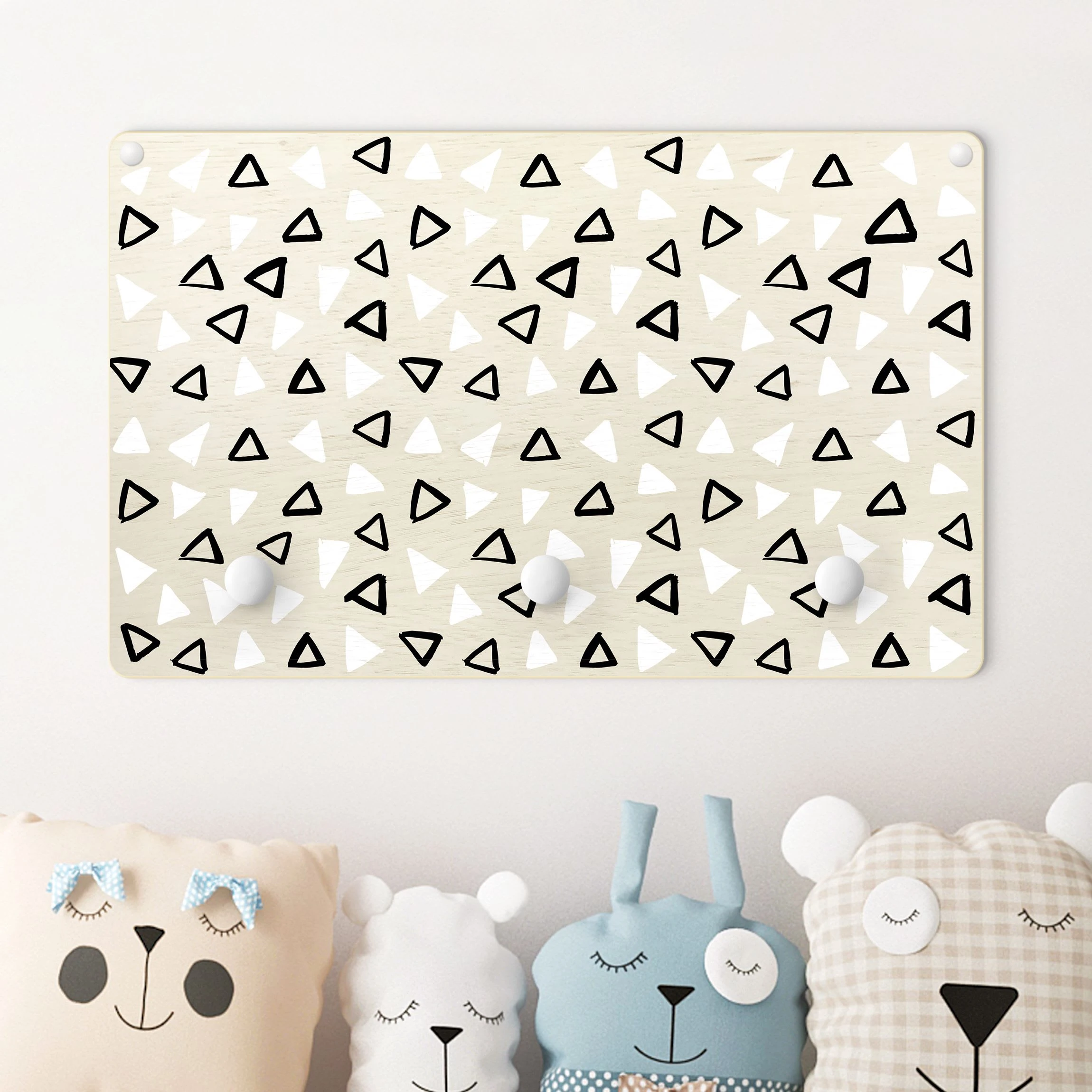 WallArt Kindergarderobe Holz – Gezeichnete Pyramiden Schwarz Weiß In Schwarz-Weiß
