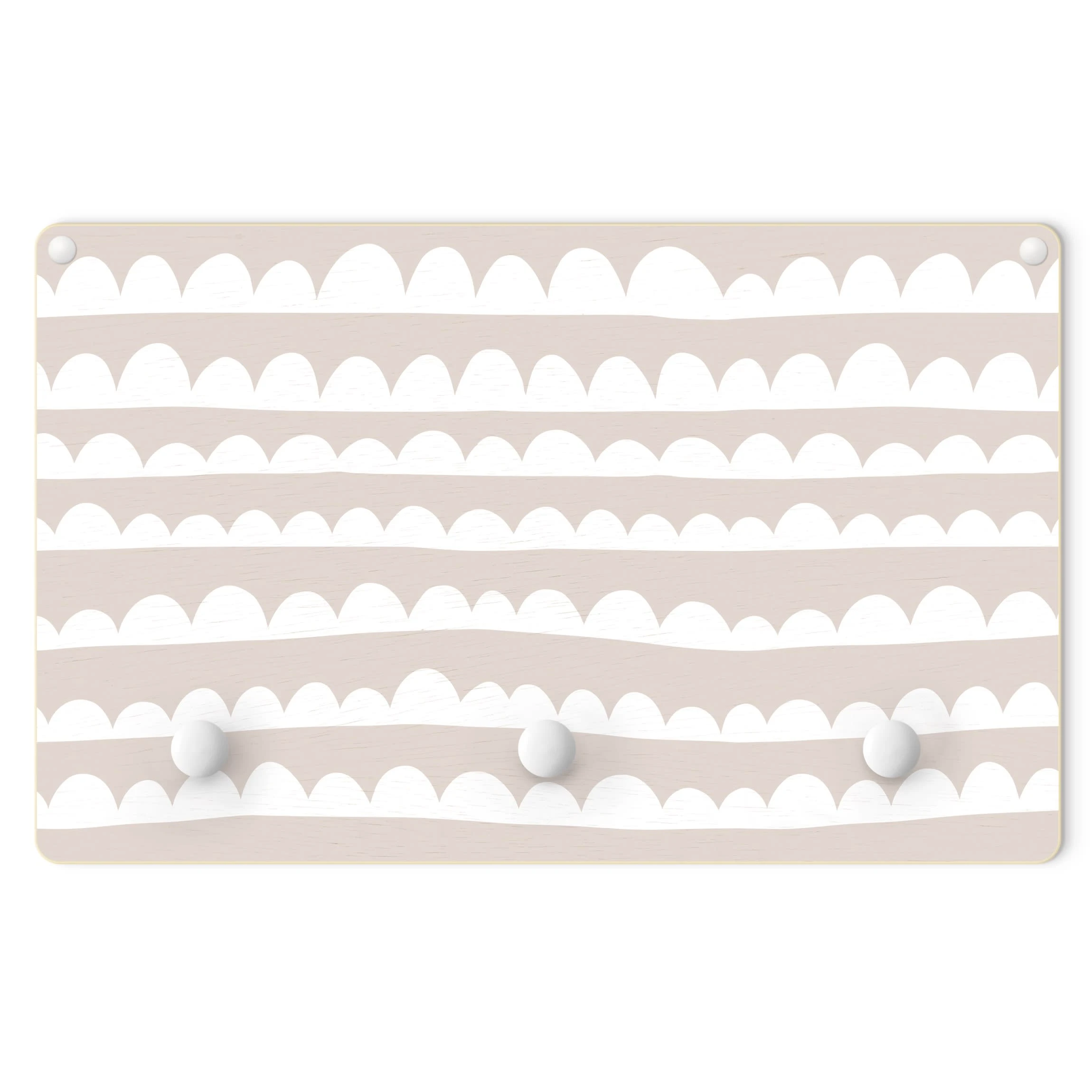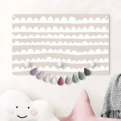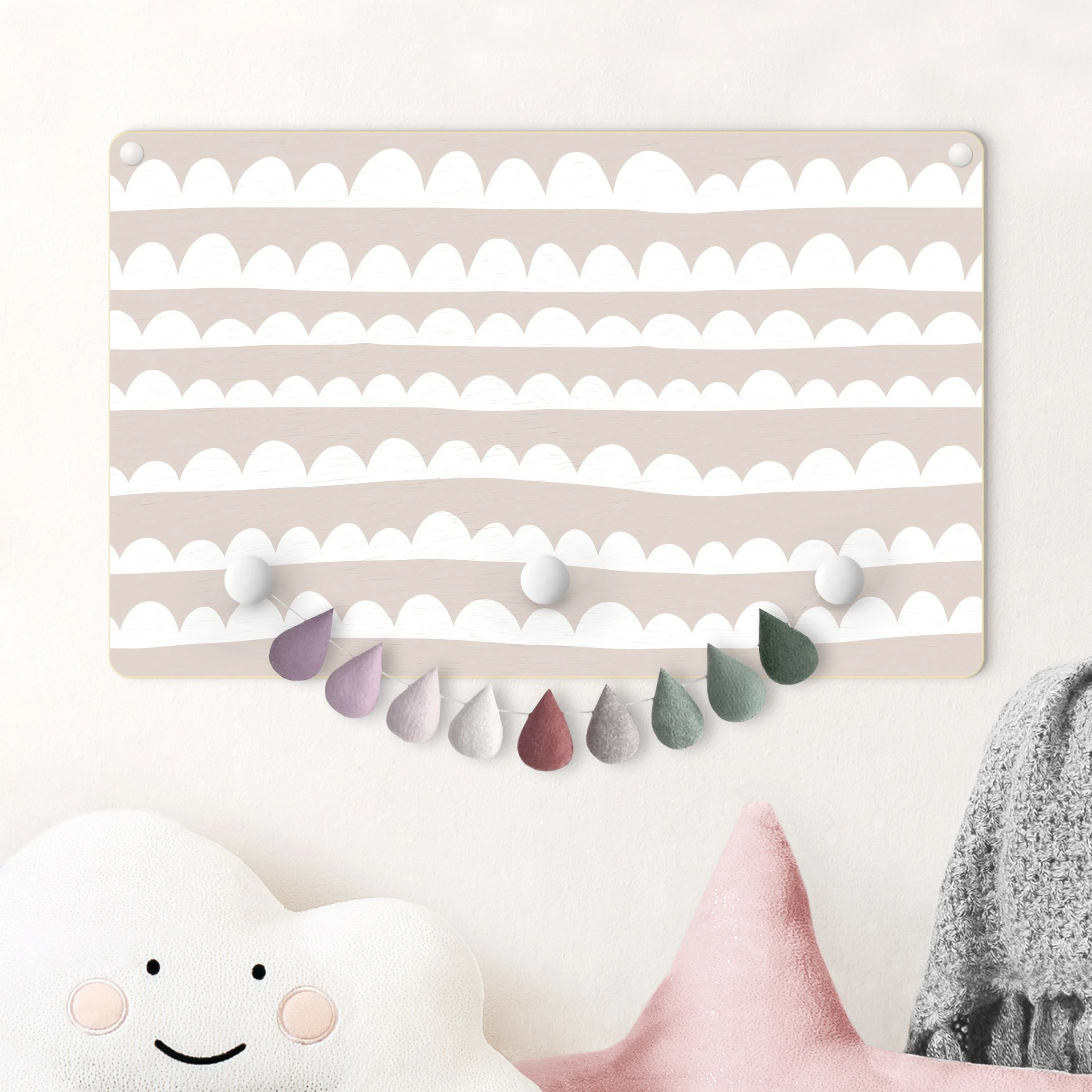WallArt Kindergarderobe Holz – Gezeichnete Weiße Wolkenbänder Auf Creme In Rosa