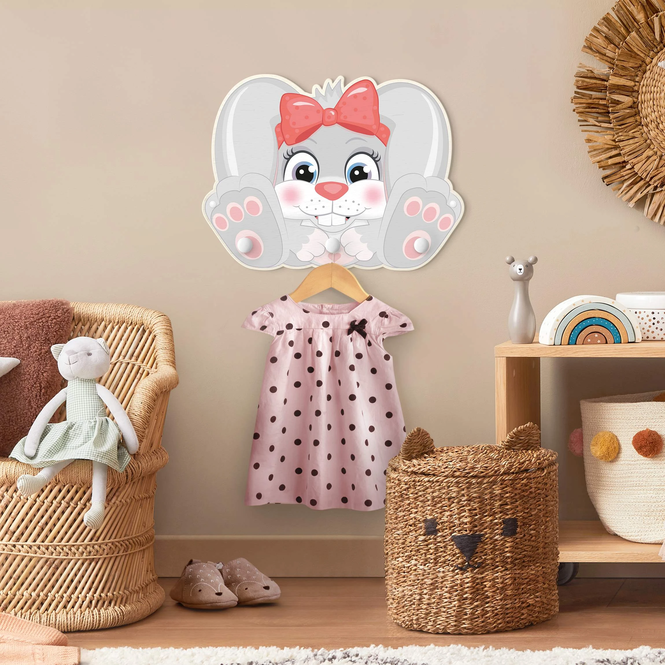 – Vorgebohrte Holz-Kindergarderobe