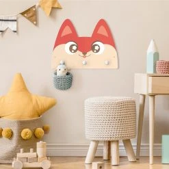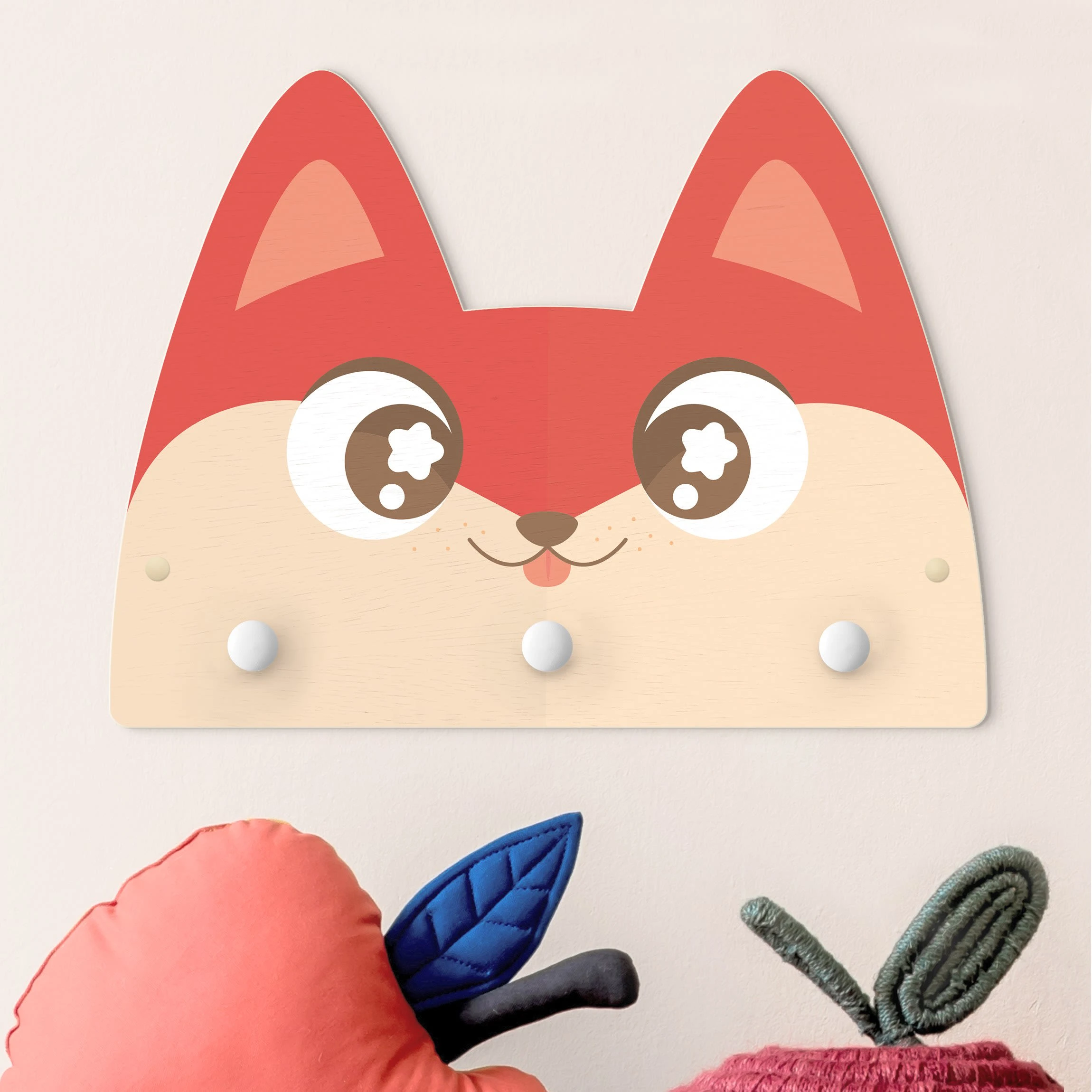 WallArt Kindergarderobe Holz – Herr Fuchs In Orange
