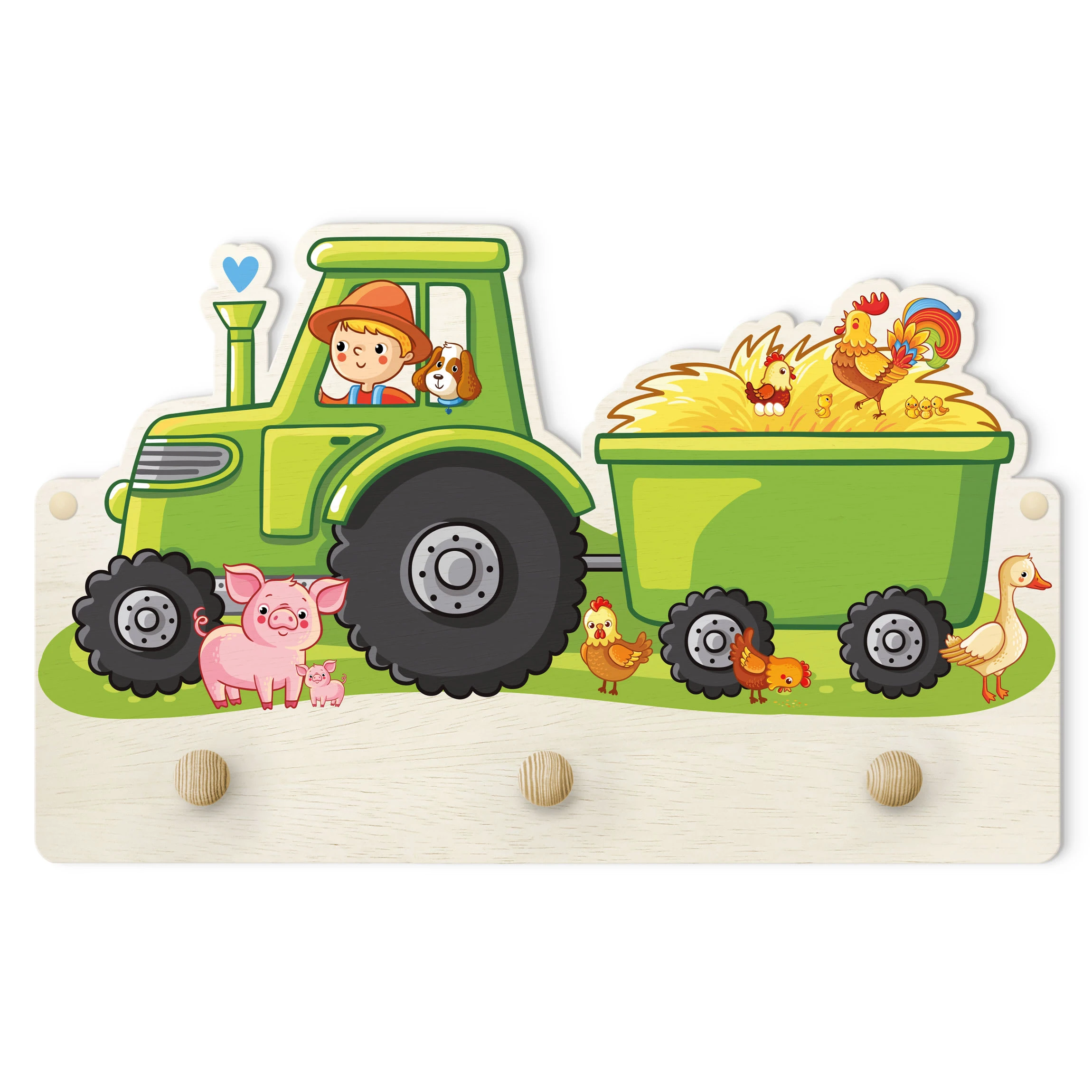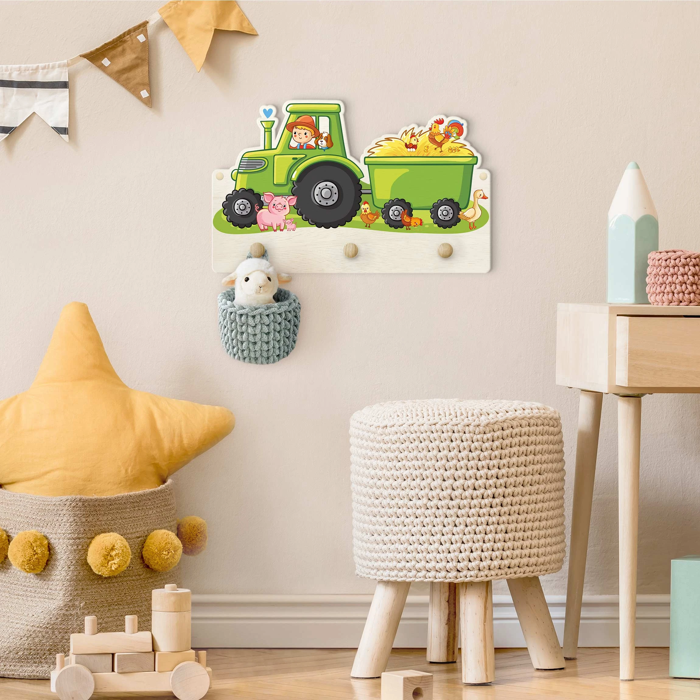 WallArt Kindergarderobe Holz – Landjunge Traktor In Grün