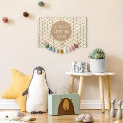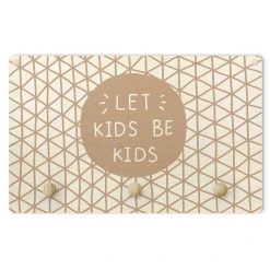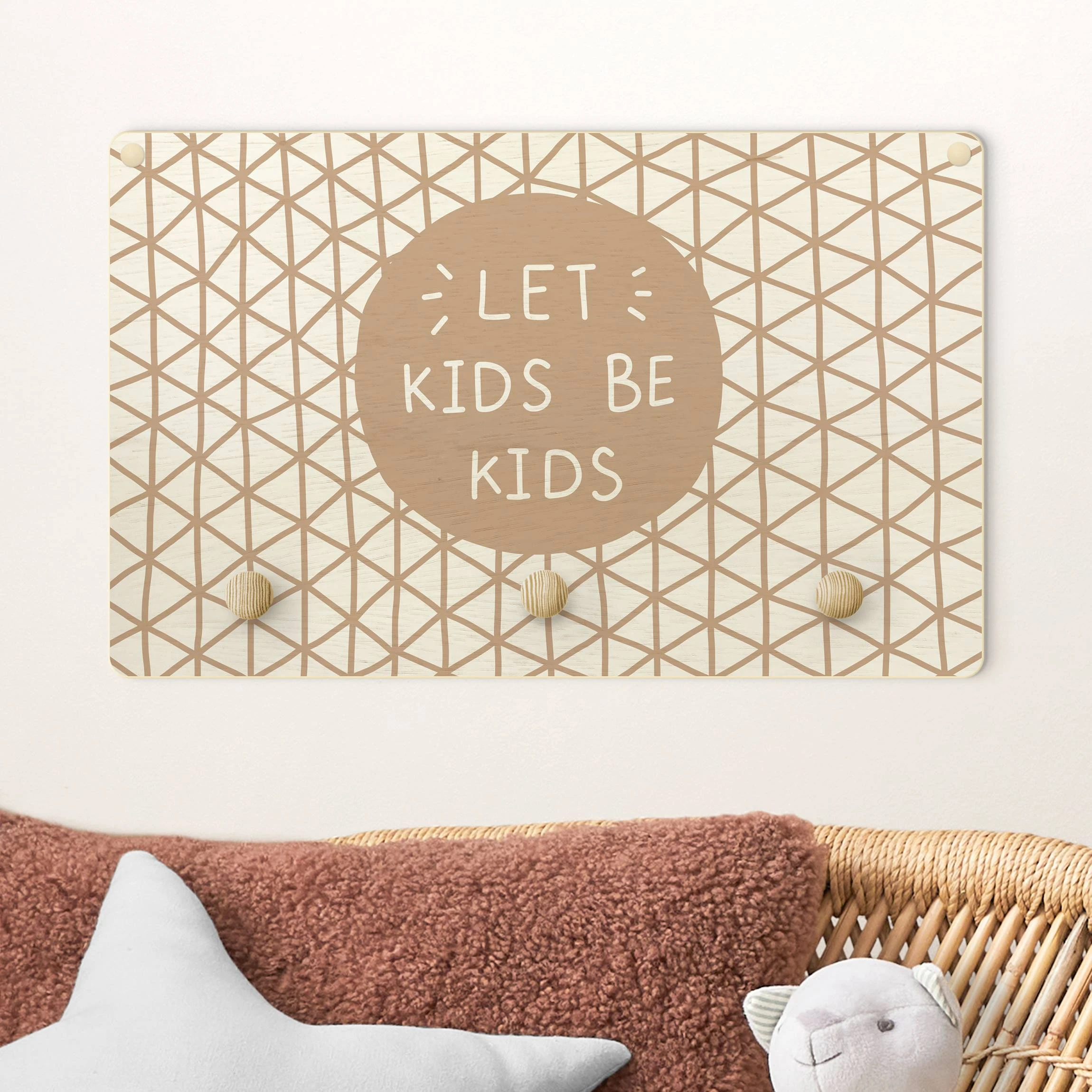 WallArt Kindergarderobe Holz – Let Kids Be Kids Mit Gitter Natur In Creme-Beige