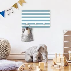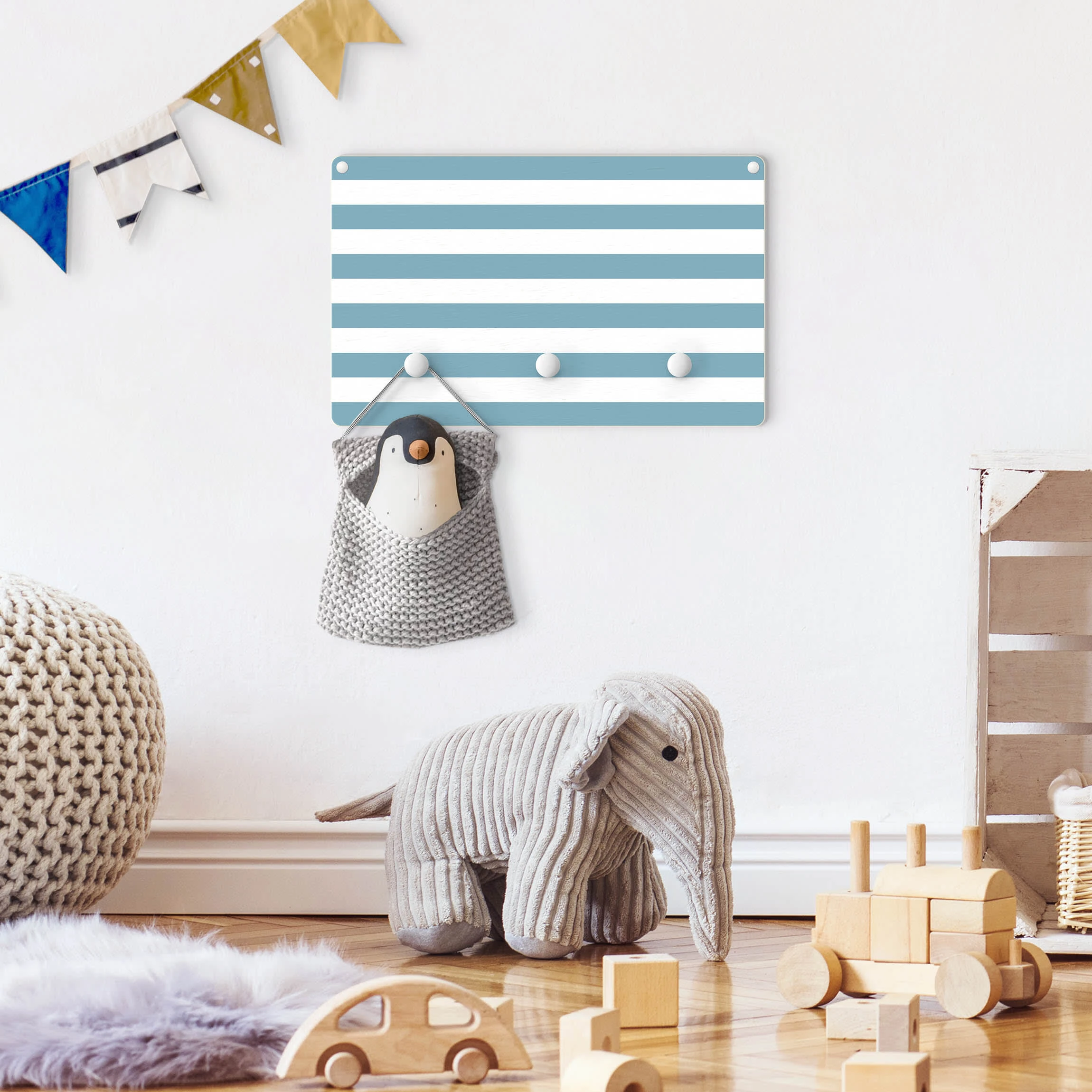 WallArt Kindergarderobe Holz – Querstreifen Blau Weiß In Blau