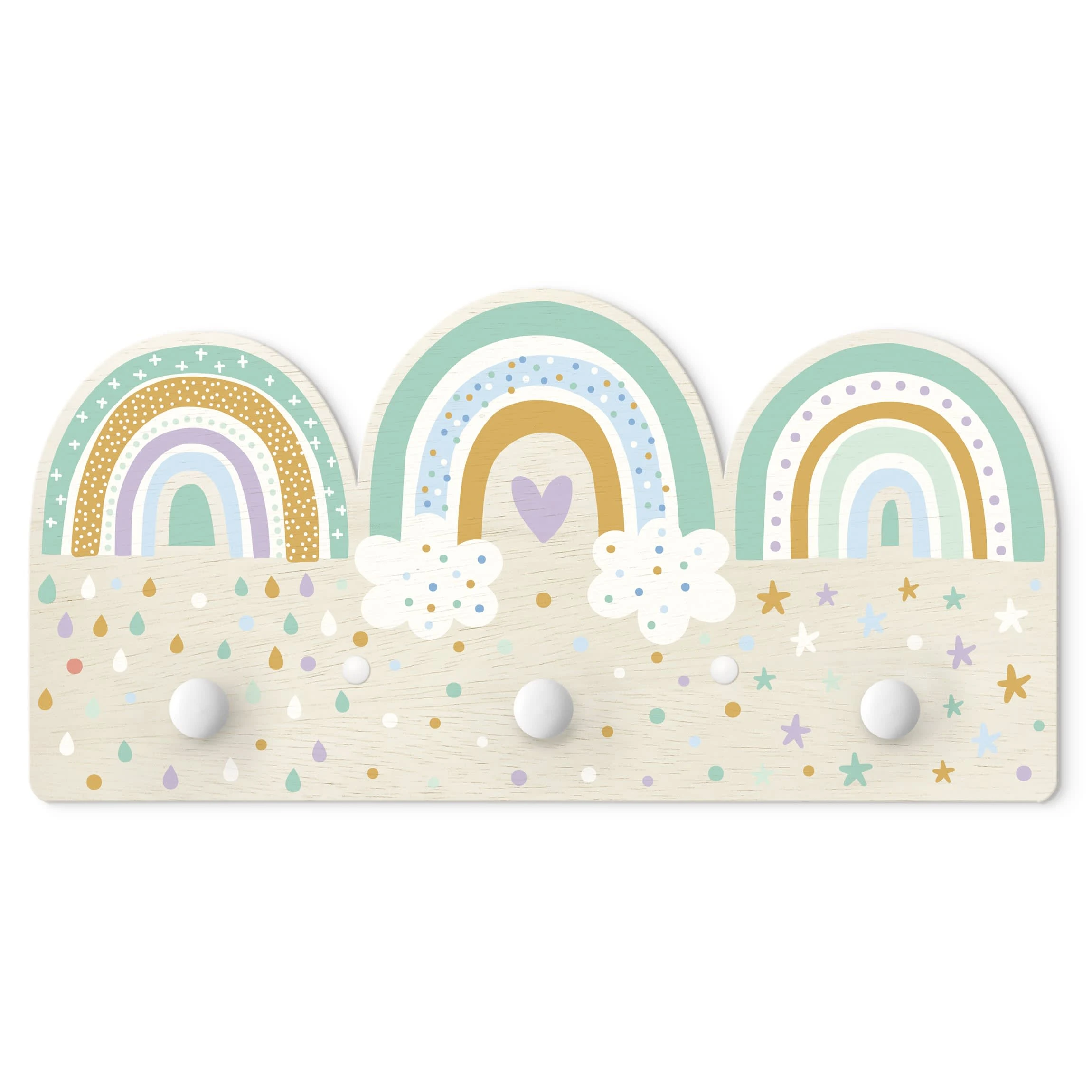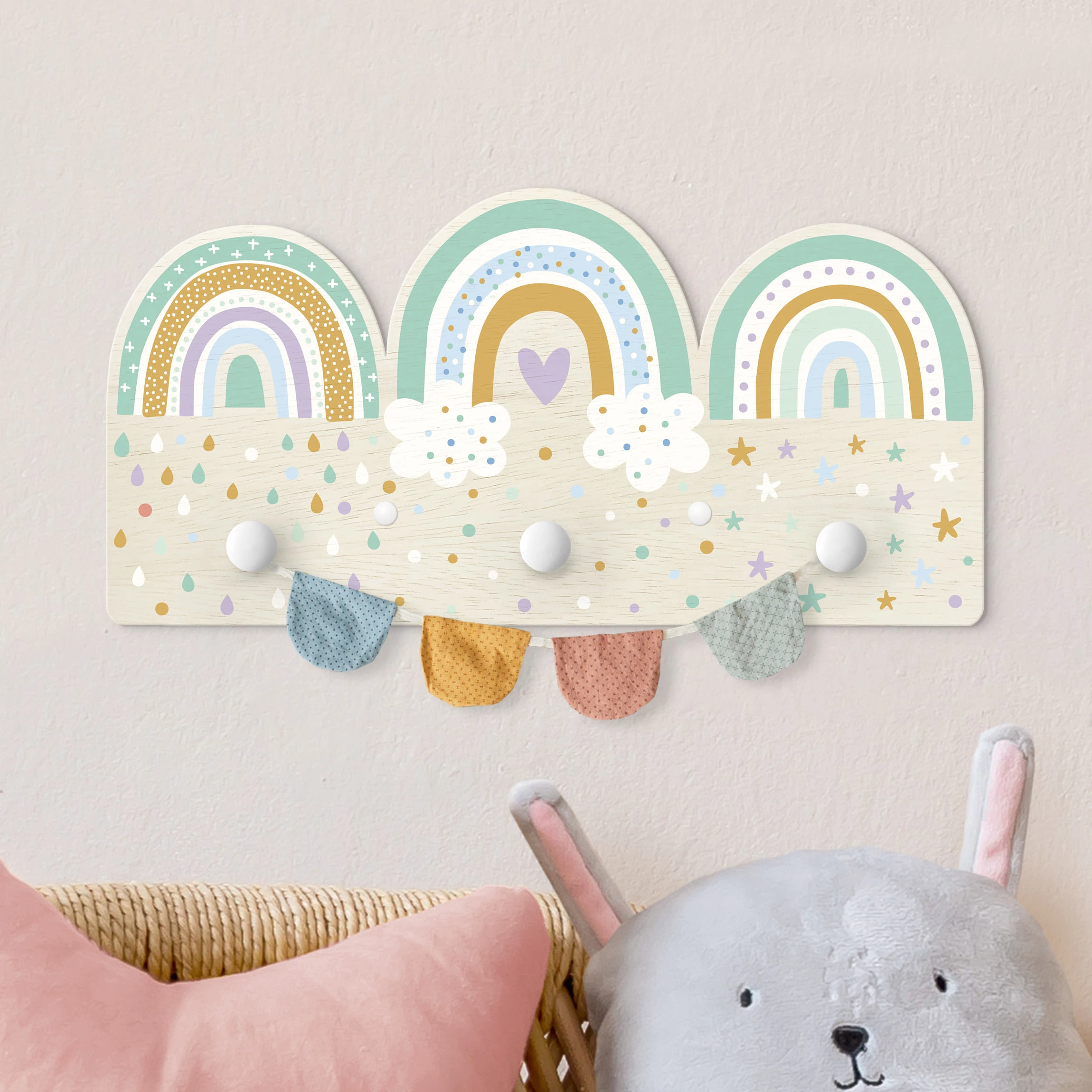 WallArt Kindergarderobe Holz – Regenbögen Pastell Mix In Pastell