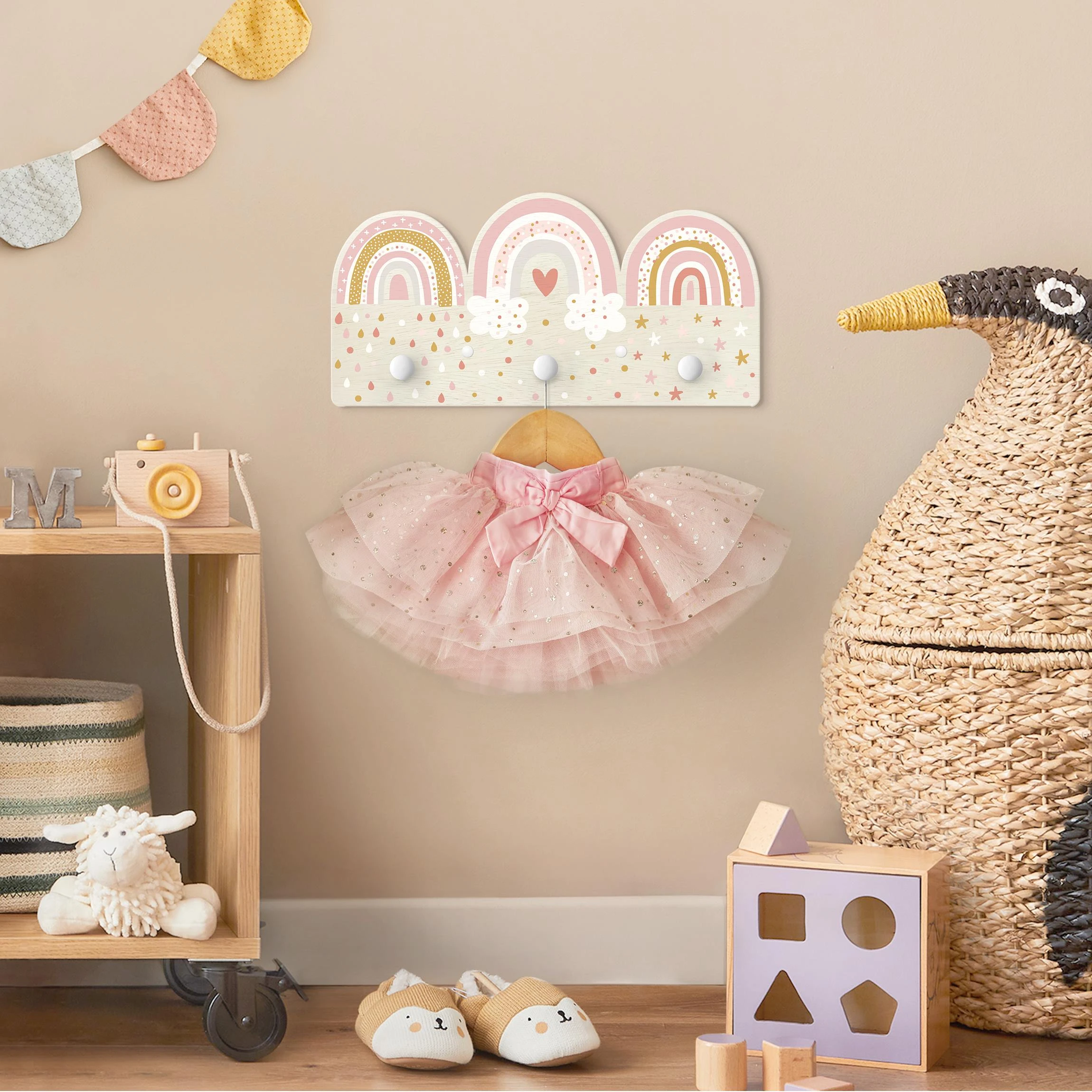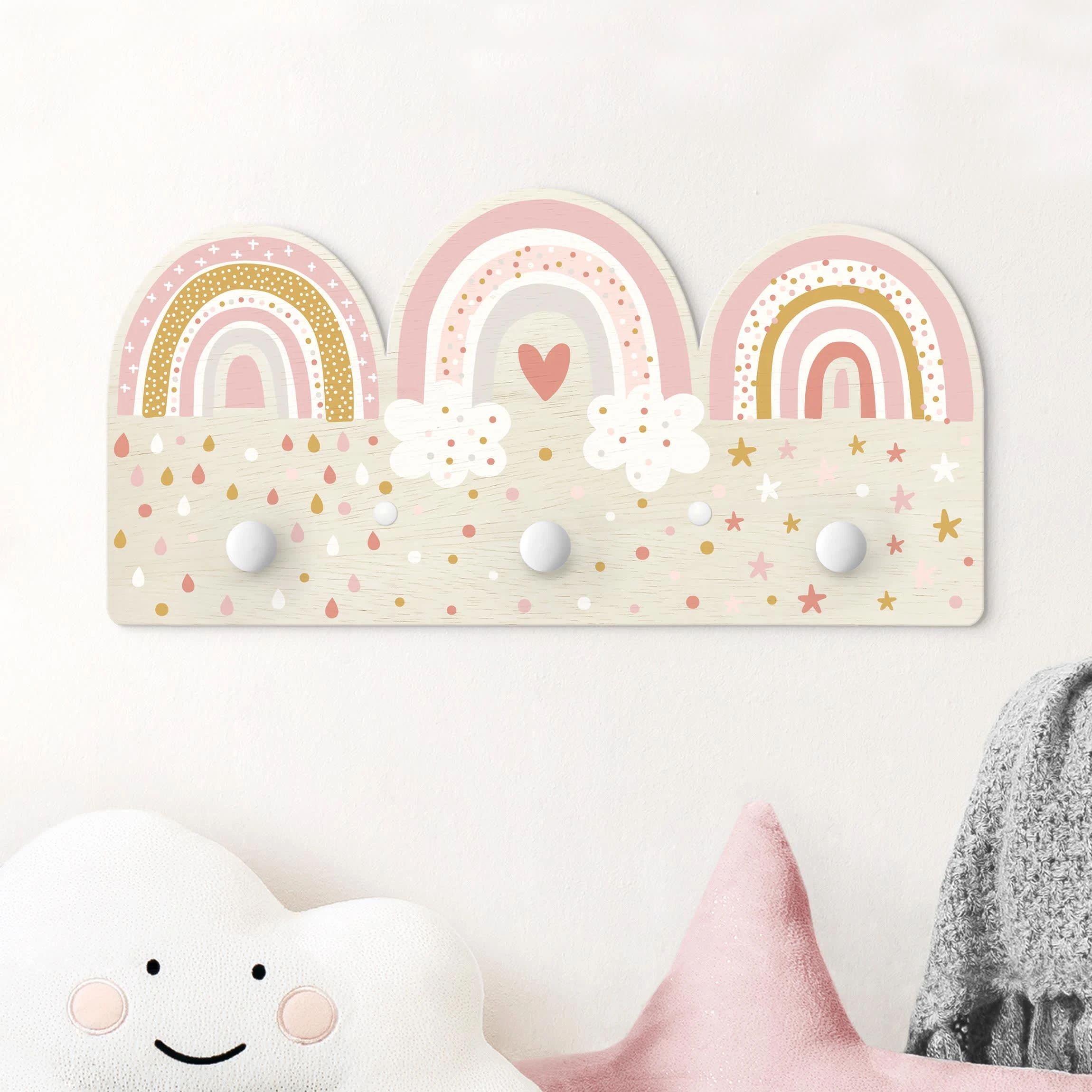 WallArt Kindergarderobe Holz – Regenbögen Rosa Mix In Rosa