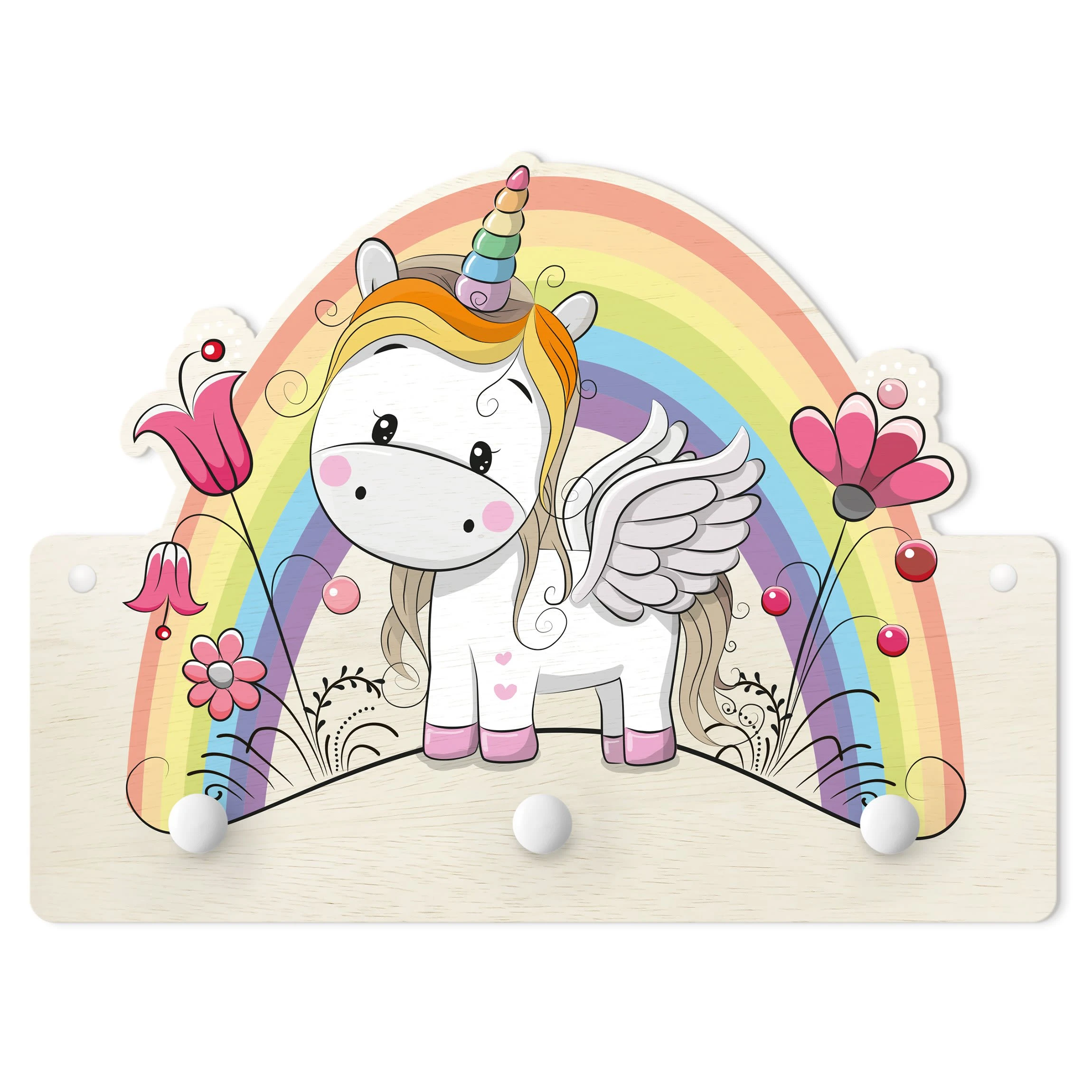 WallArt Kindergarderobe Holz – Regenbogen Einhorn In Pastell