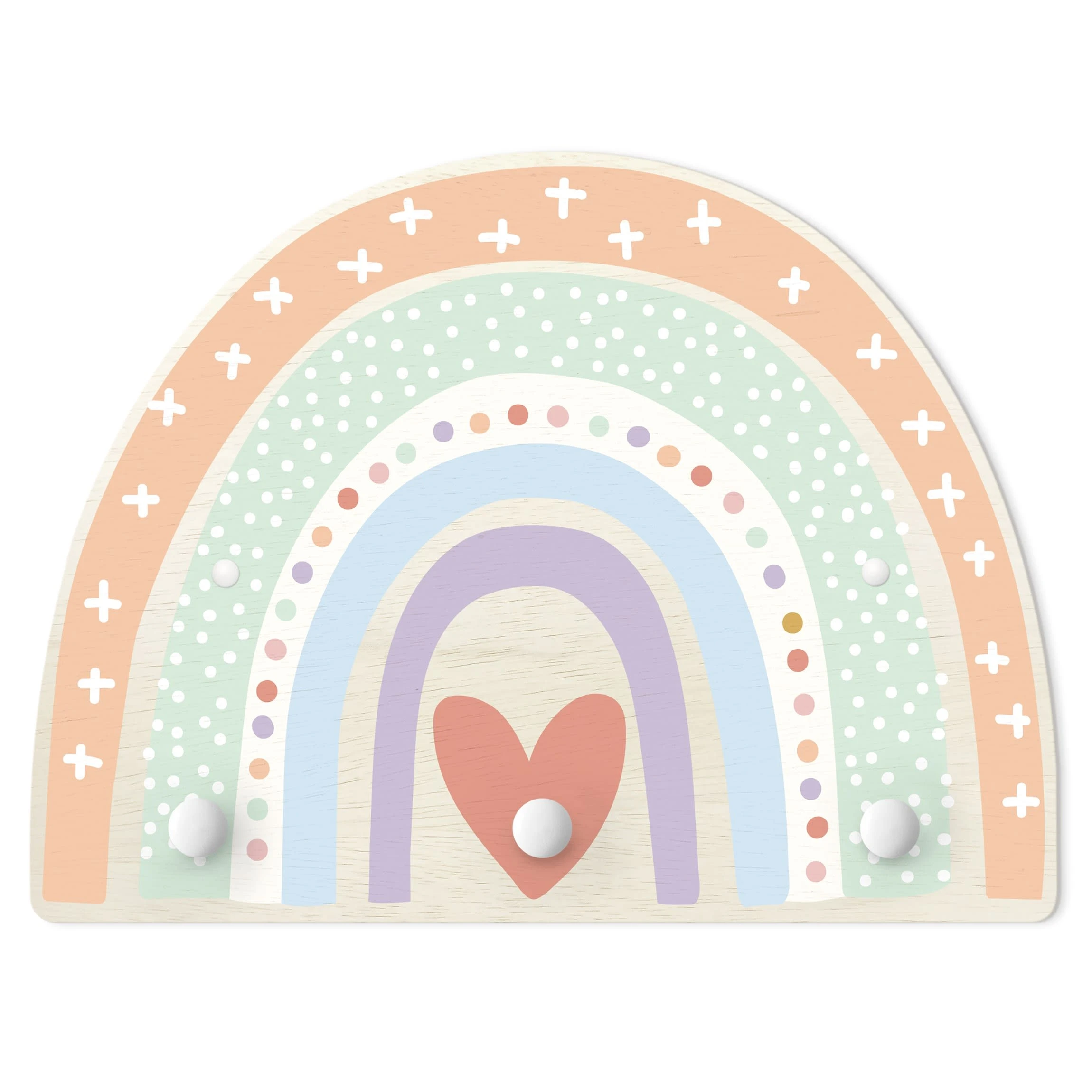 WallArt Kindergarderobe Holz – Regenbogen Punkte Herz Pastell In Pastell
