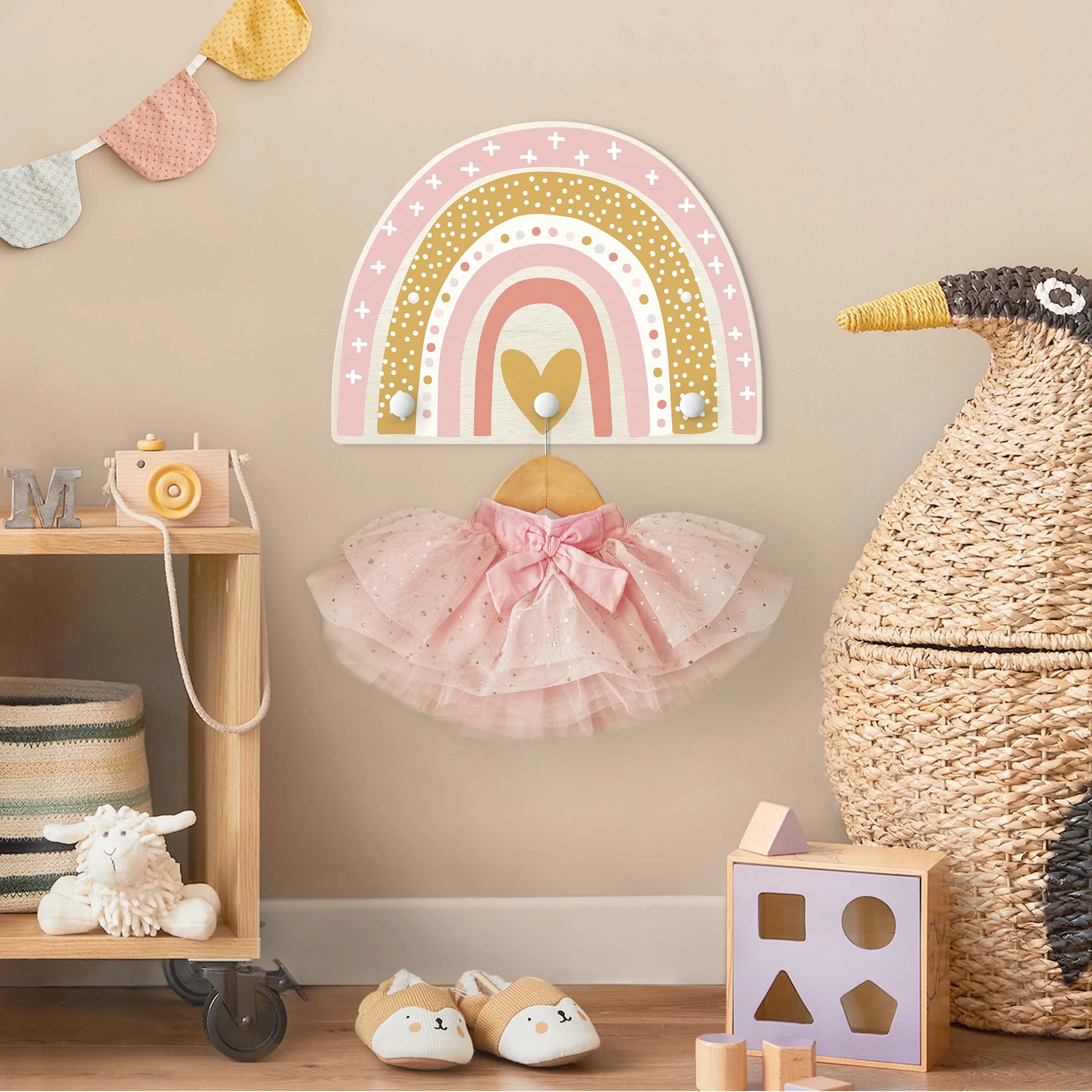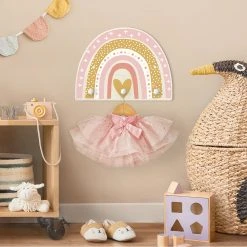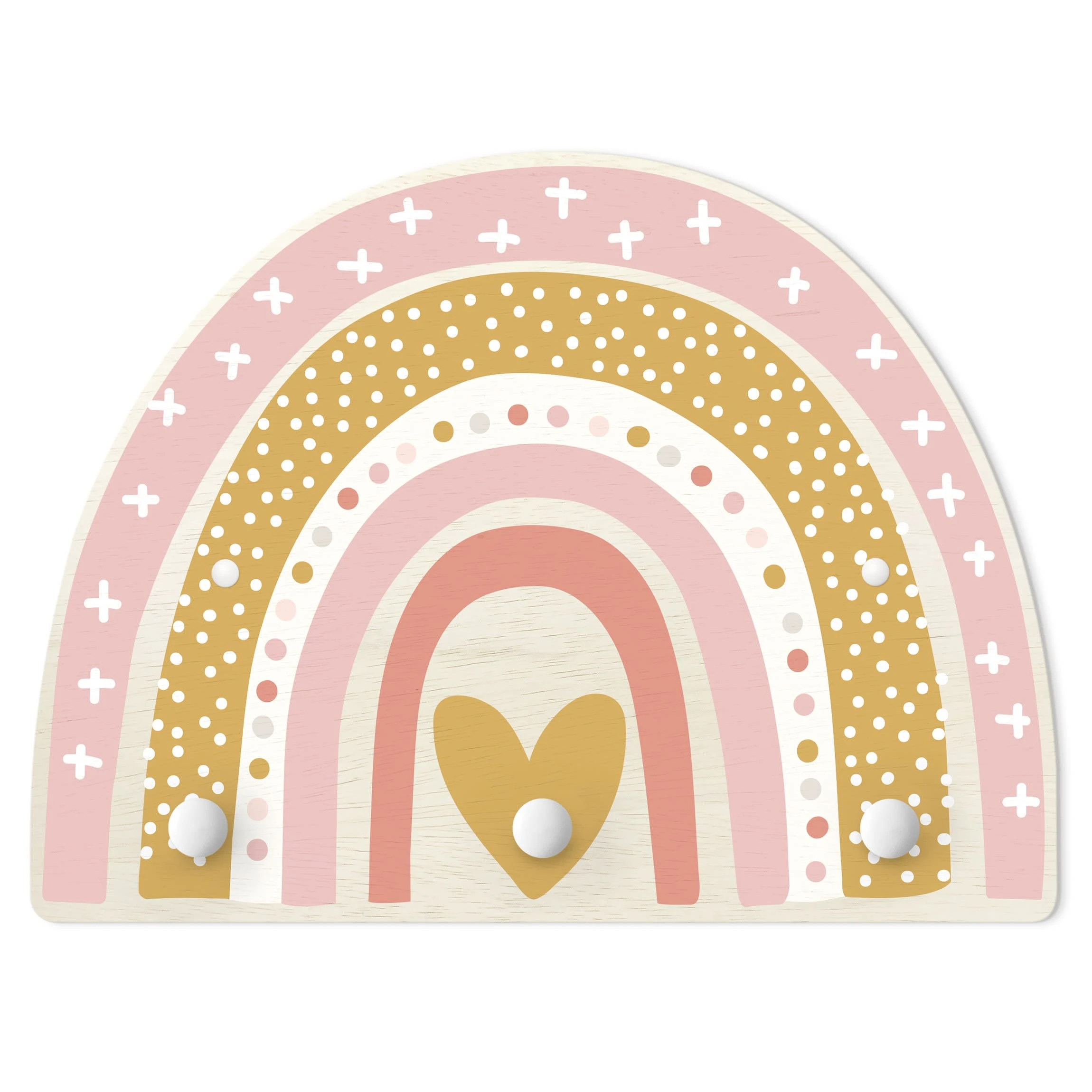 WallArt Kindergarderobe Holz – Regenbogen Punkte Herz Rosa In Rosa