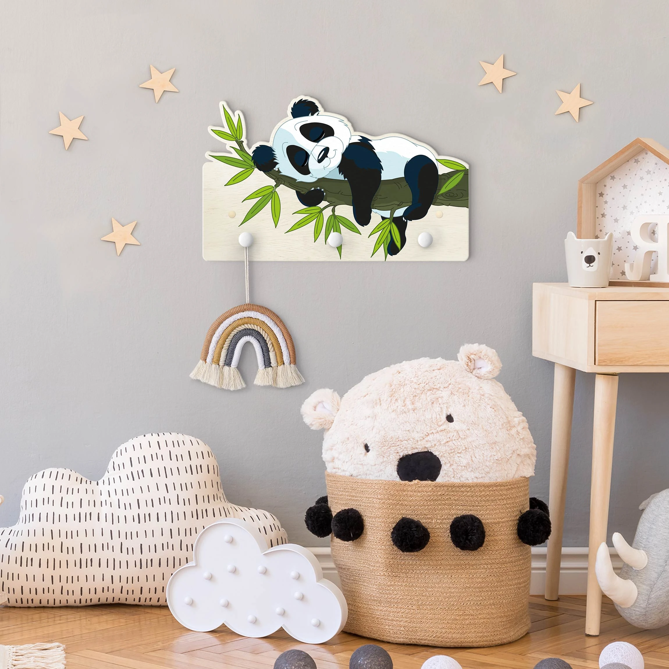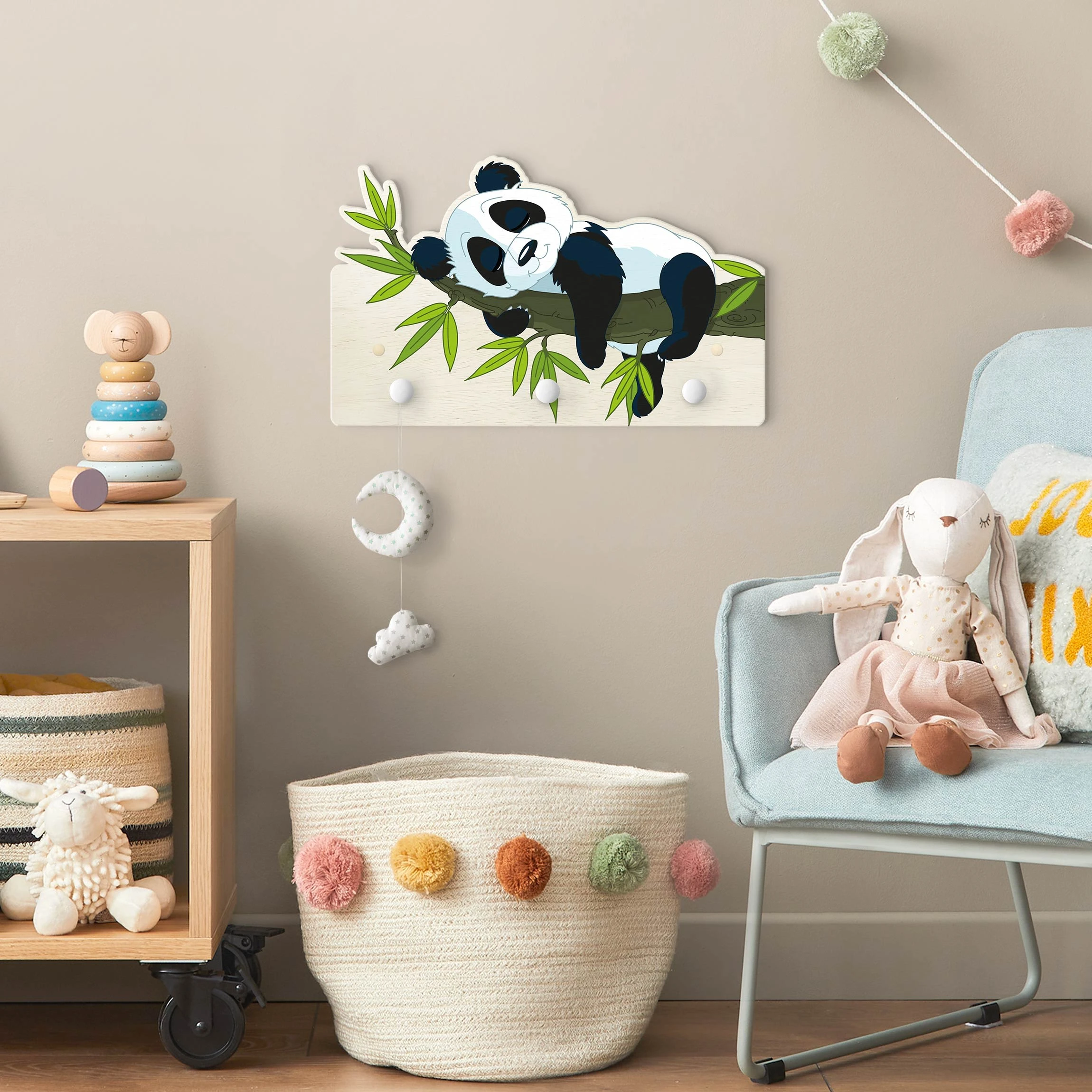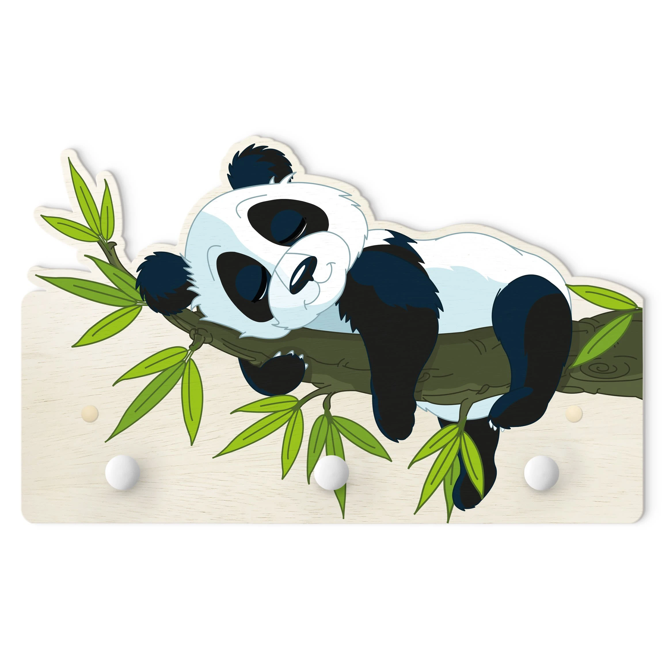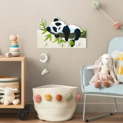 WallArt Kindergarderobe Holz – Schlafender Panda In Weiß