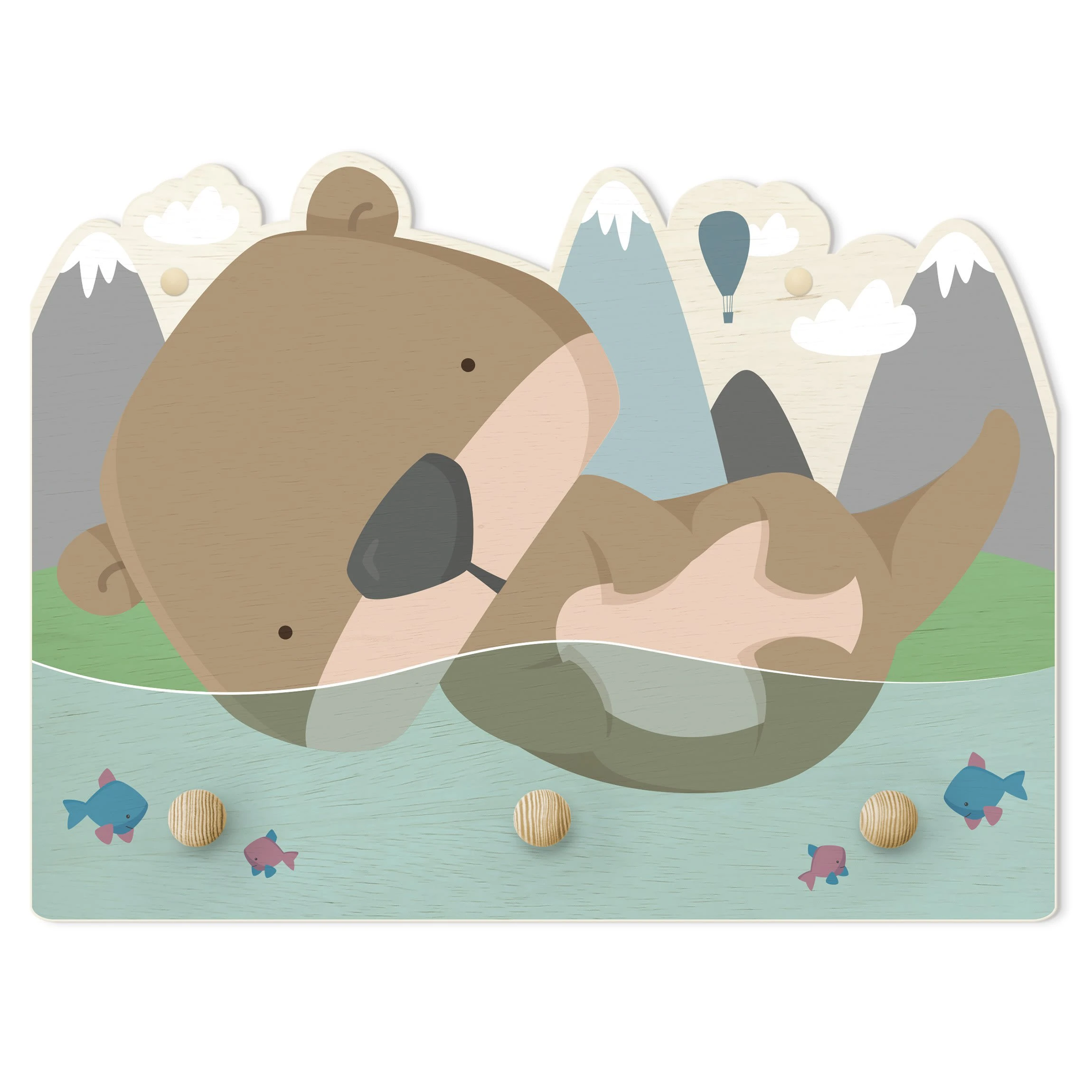 WallArt Kindergarderobe Holz – Schwimmender Baby Otter In Blau