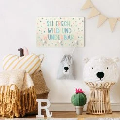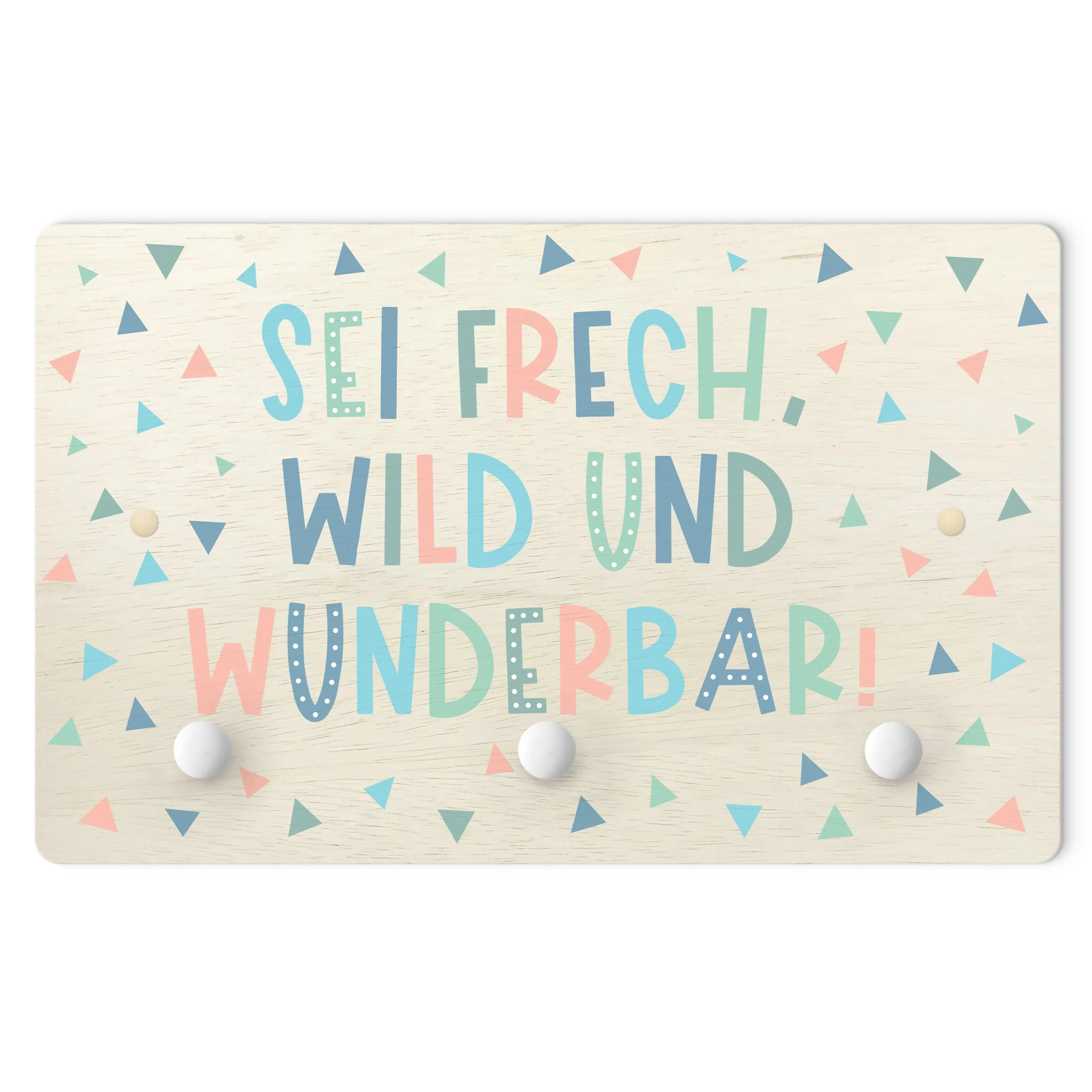 WallArt Kindergarderobe Holz – Sei Frech, Wild Und Wunderbar In Türkis
