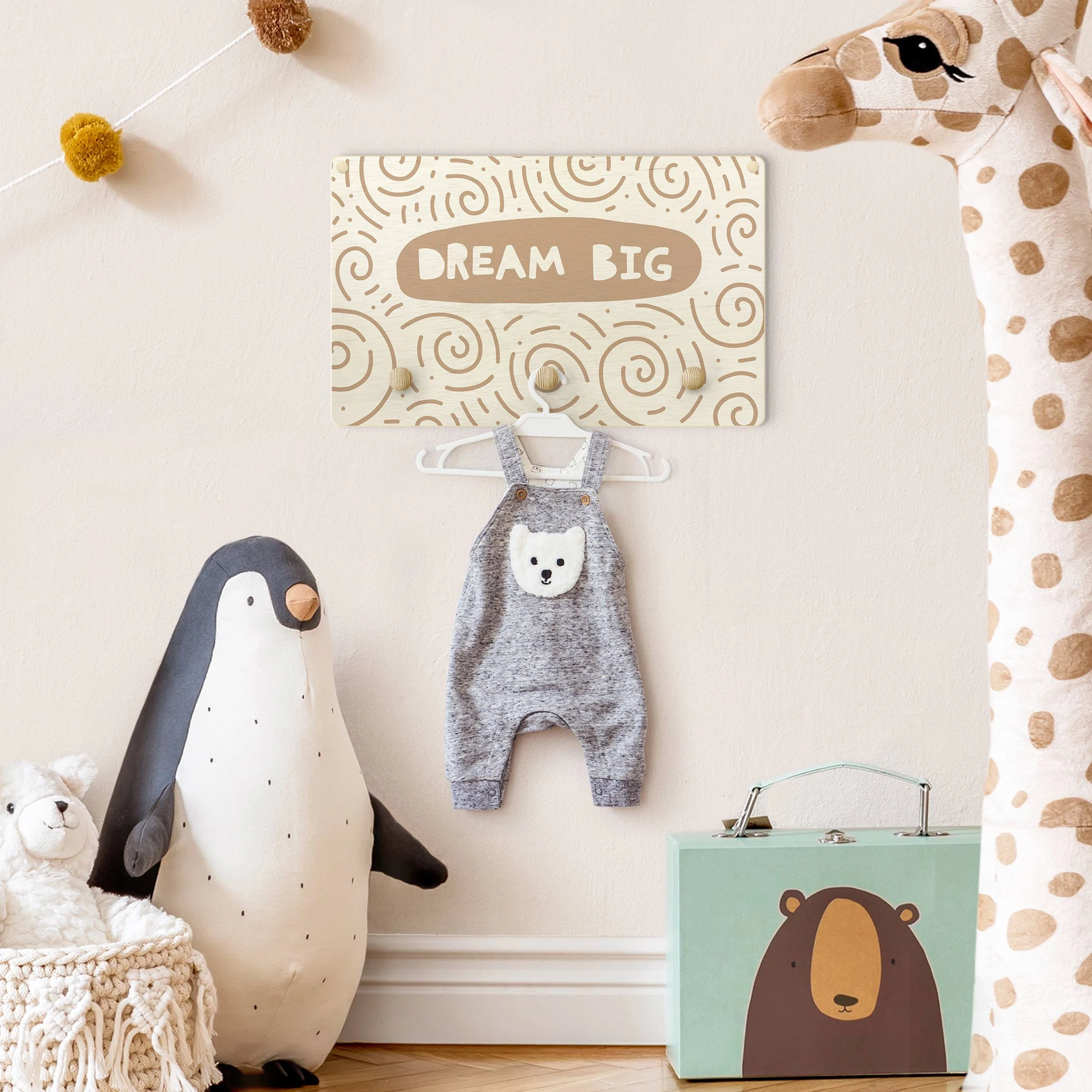 WallArt Kindergarderobe Holz – Spruch Dream Big Mit Wirbel Natur In Creme-Beige
