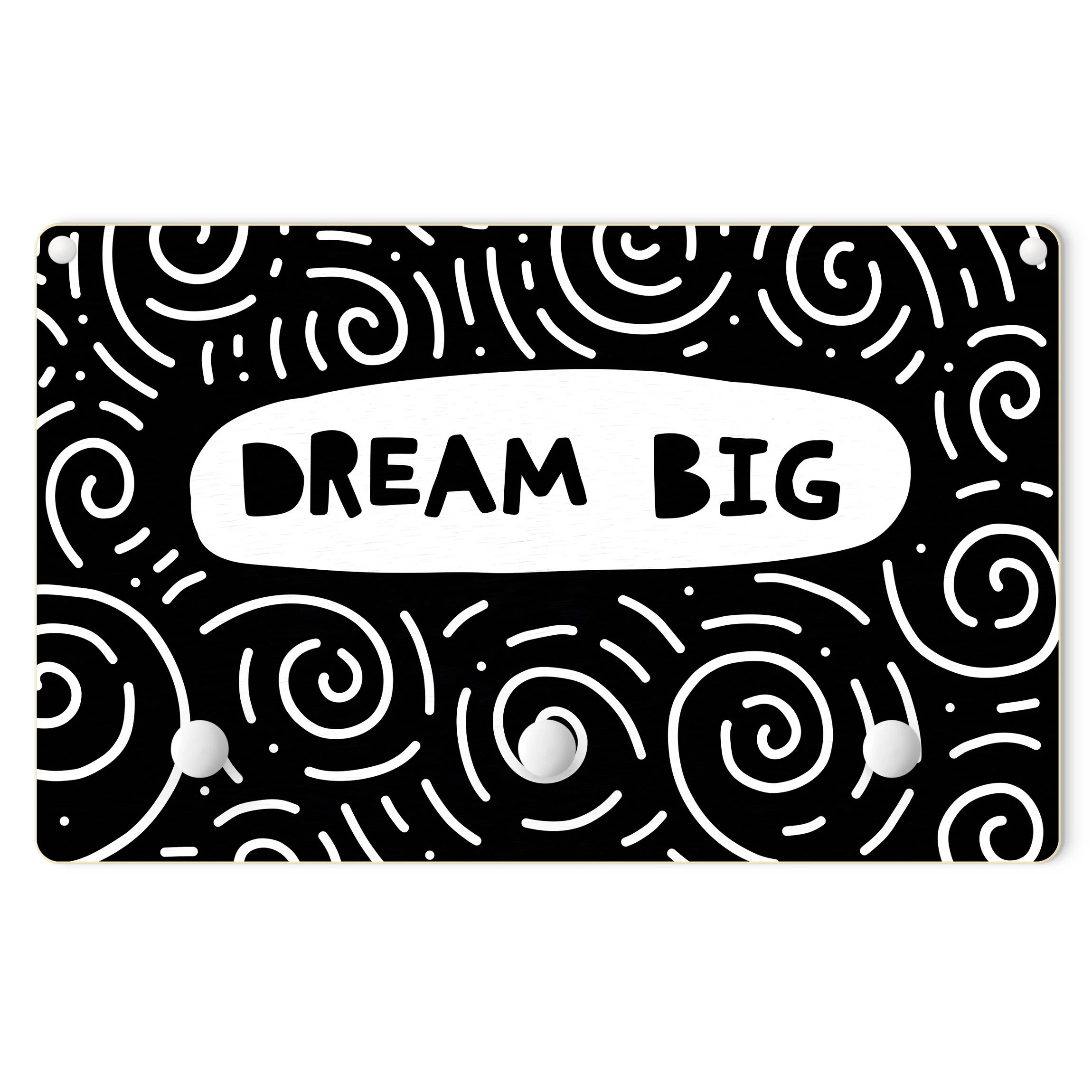 WallArt Kindergarderobe Holz – Spruch Dream Big Mit Wirbel Schwarz Weiß In Schwarz