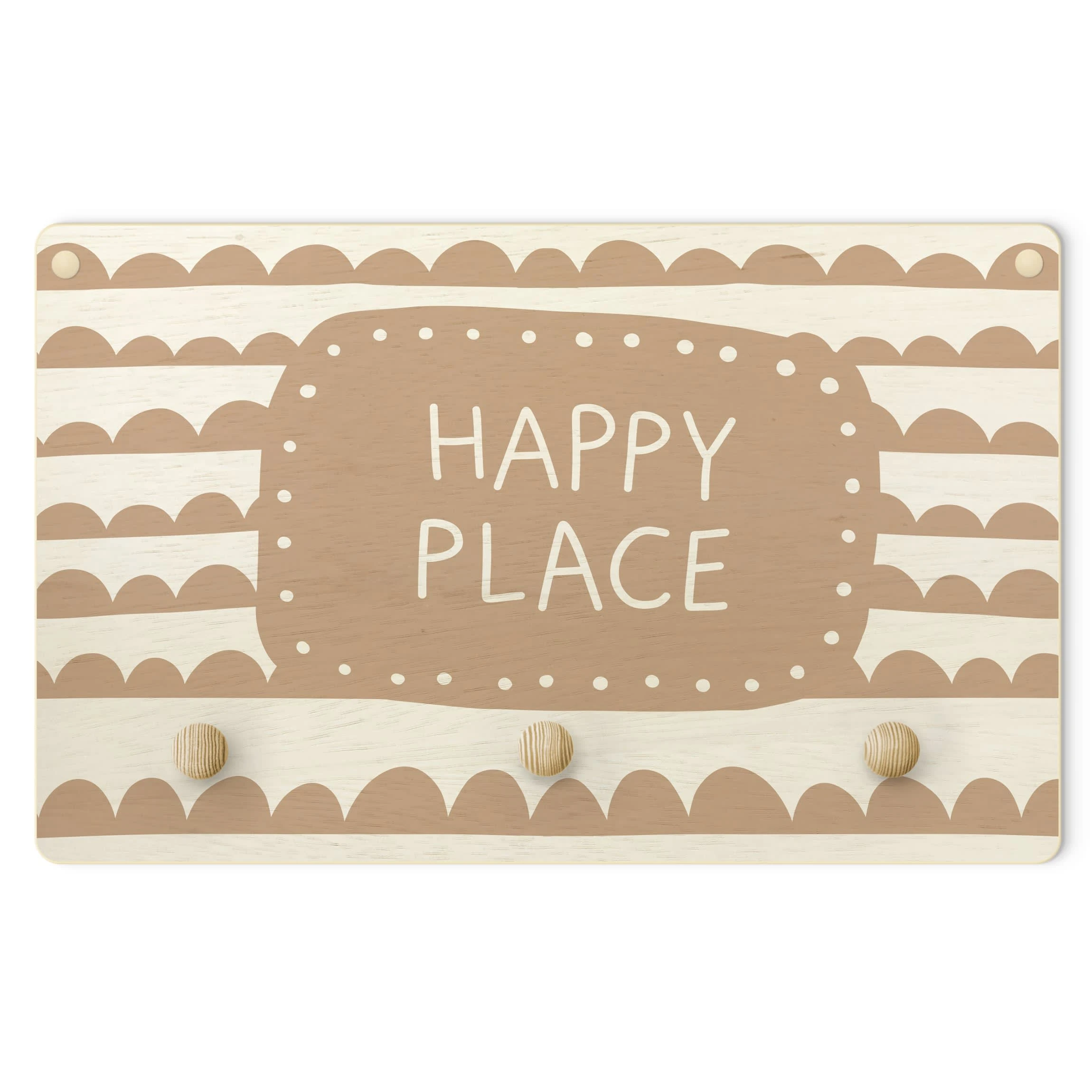 WallArt Kindergarderobe Holz – Spruch Happy Place Im Wolkenband Natur In Creme-Beige