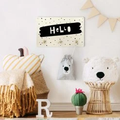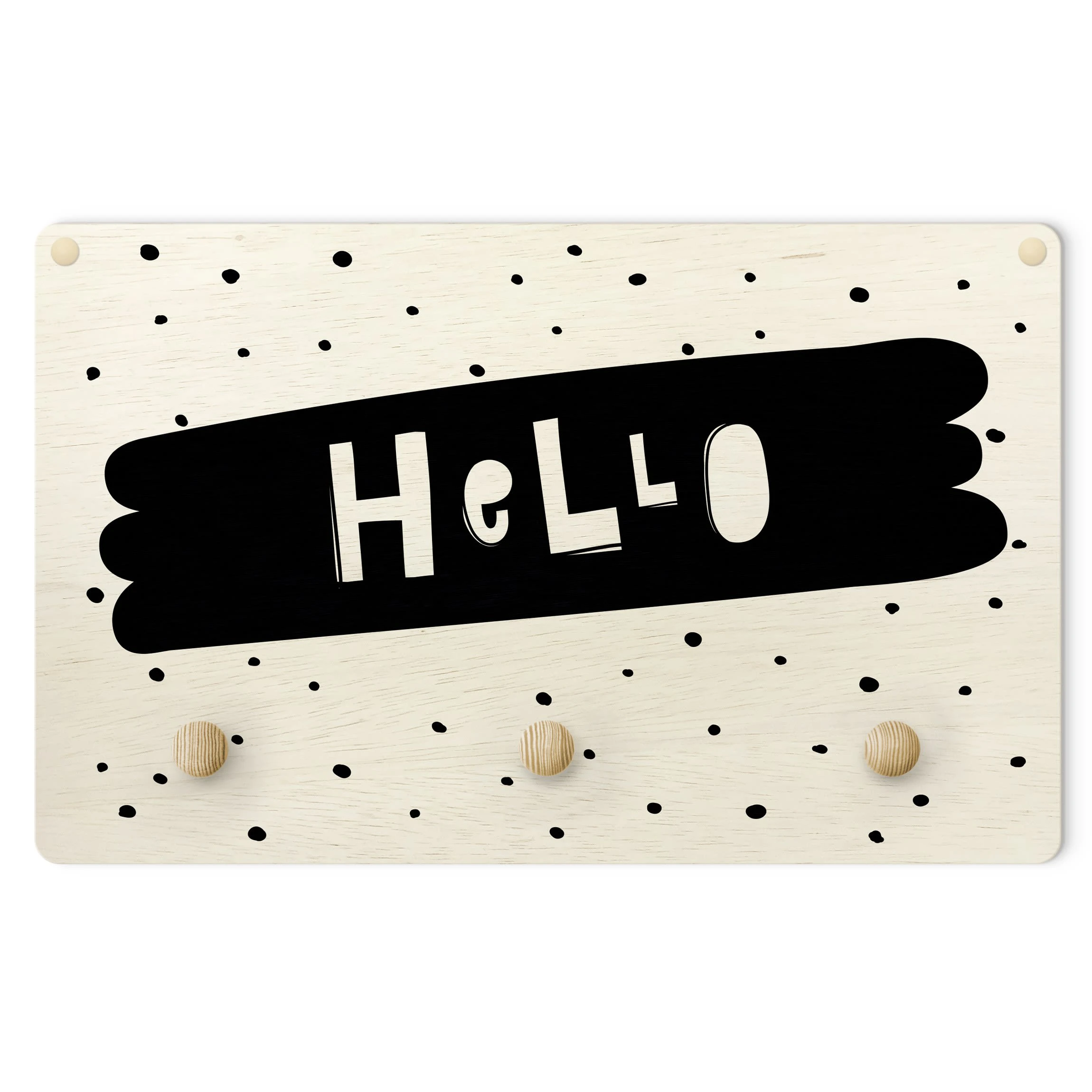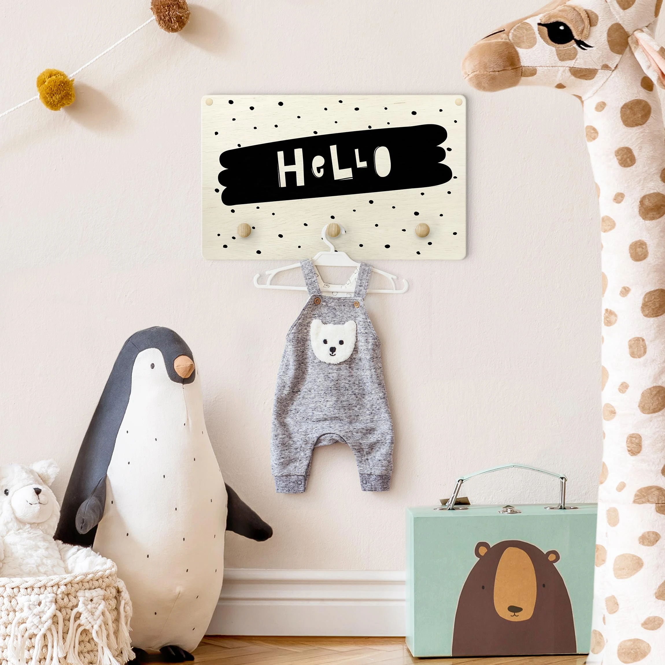 WallArt Kindergarderobe Holz – Spruch Hello Auf Pinselstrich Schwarz In Schwarz