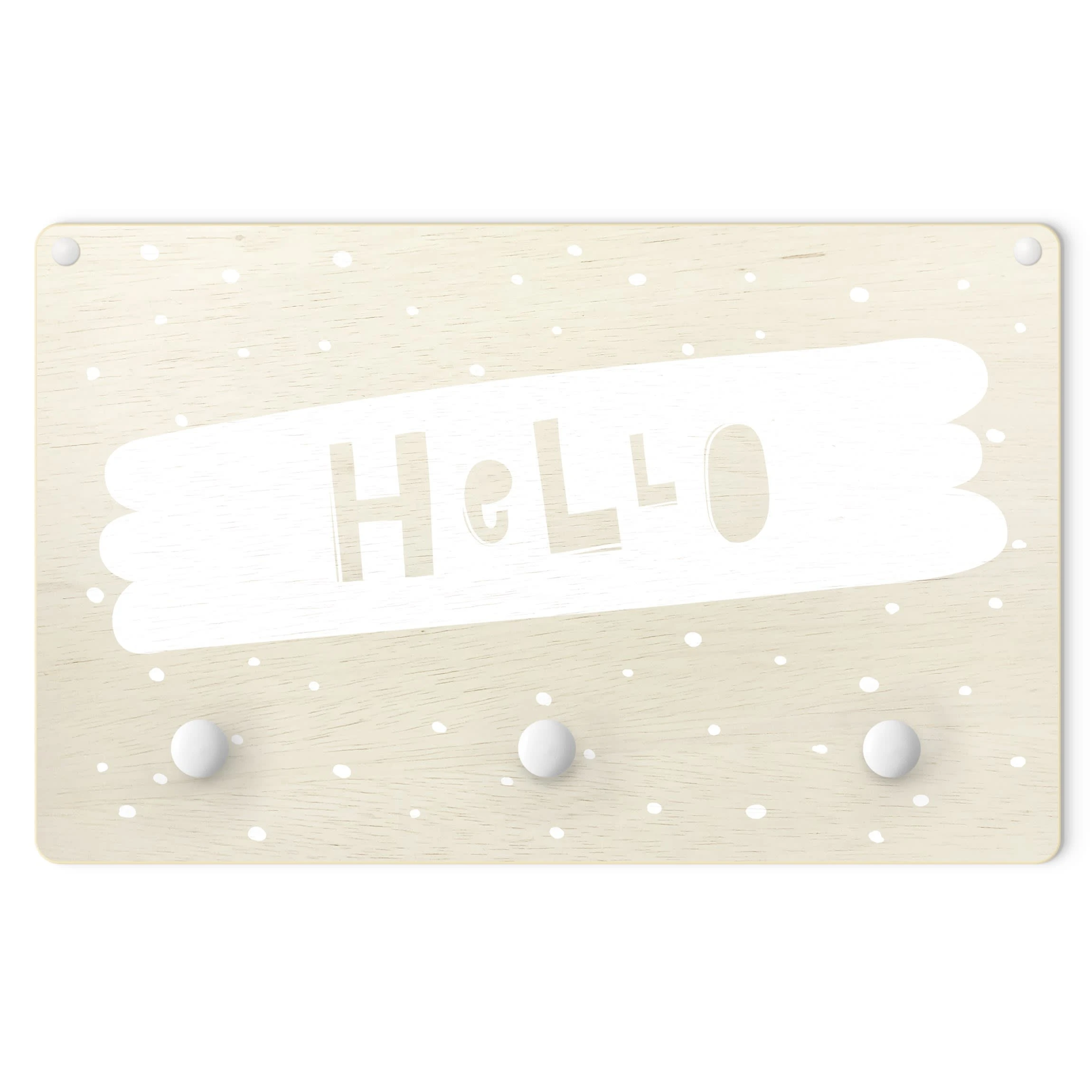 WallArt Kindergarderobe Holz – Spruch Hello Auf Pinselstrich Weiß In Weiß
