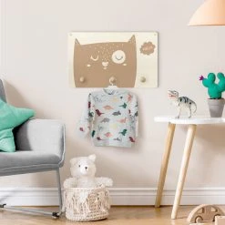 WallArt Kindergarderobe Holz – Spruch Hello Katzengesicht Natur In Creme-Beige
