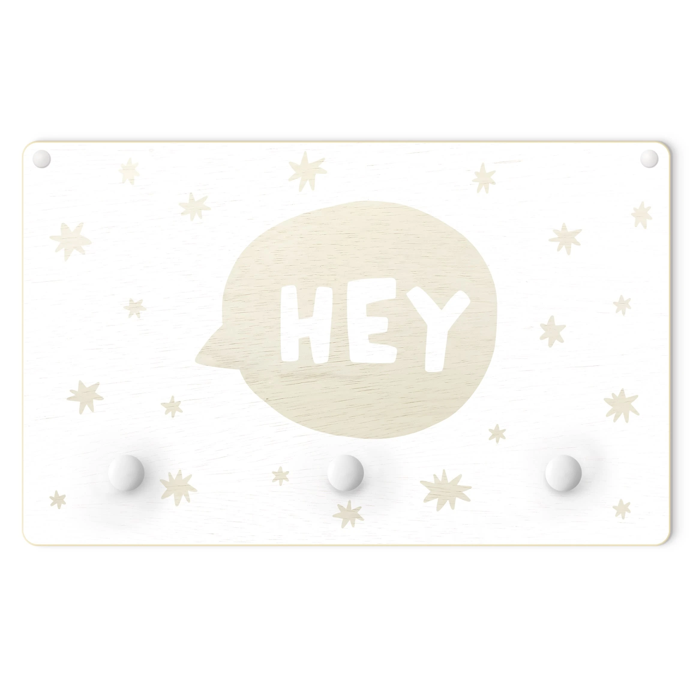 WallArt Kindergarderobe Holz – Spruch Hey In Sprechblase Weiß In Weiß