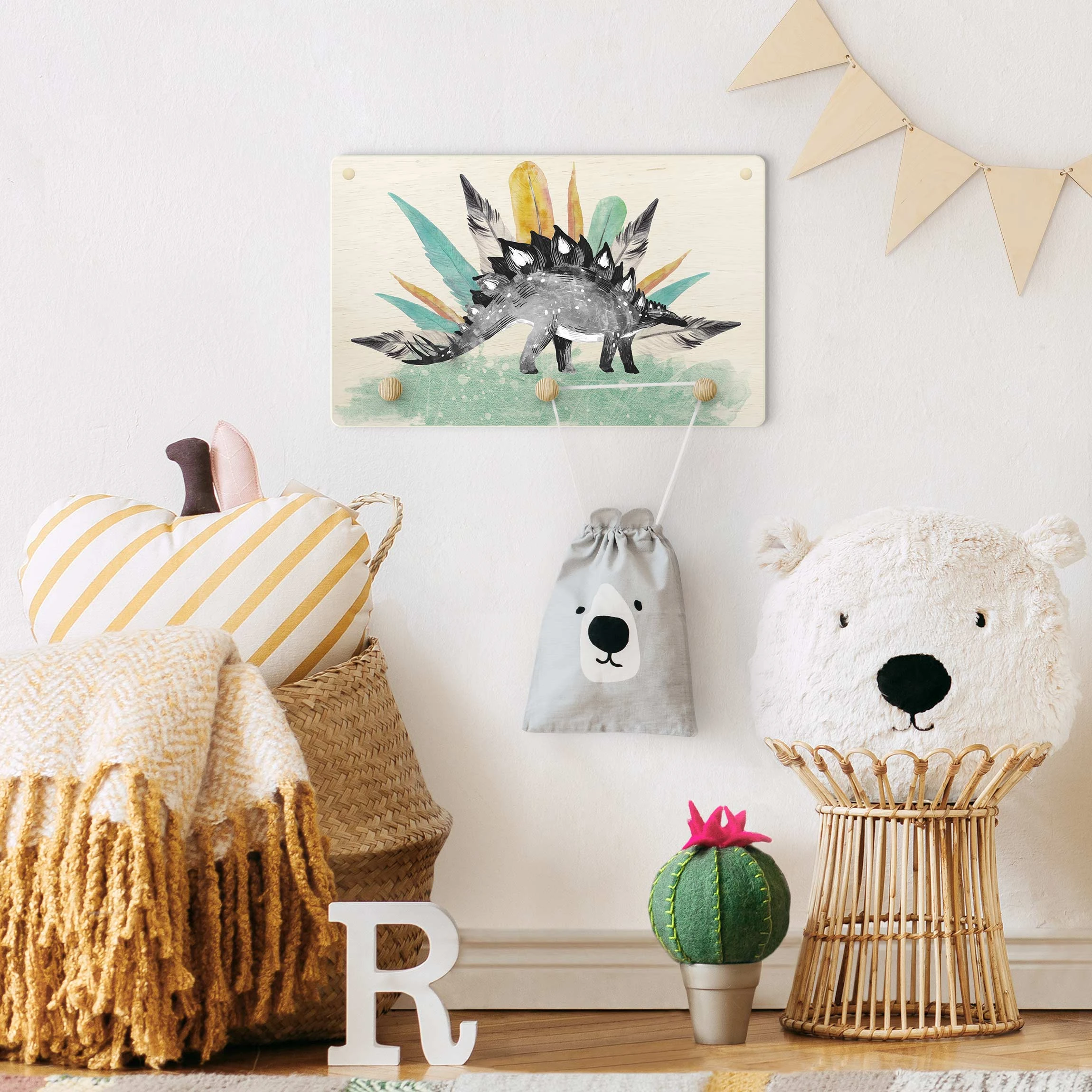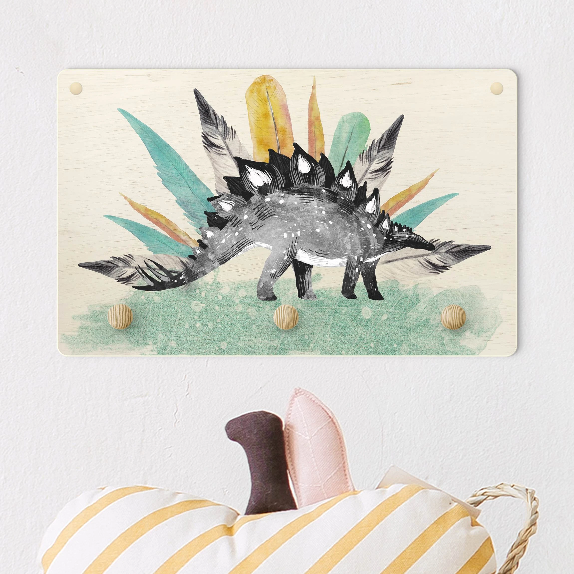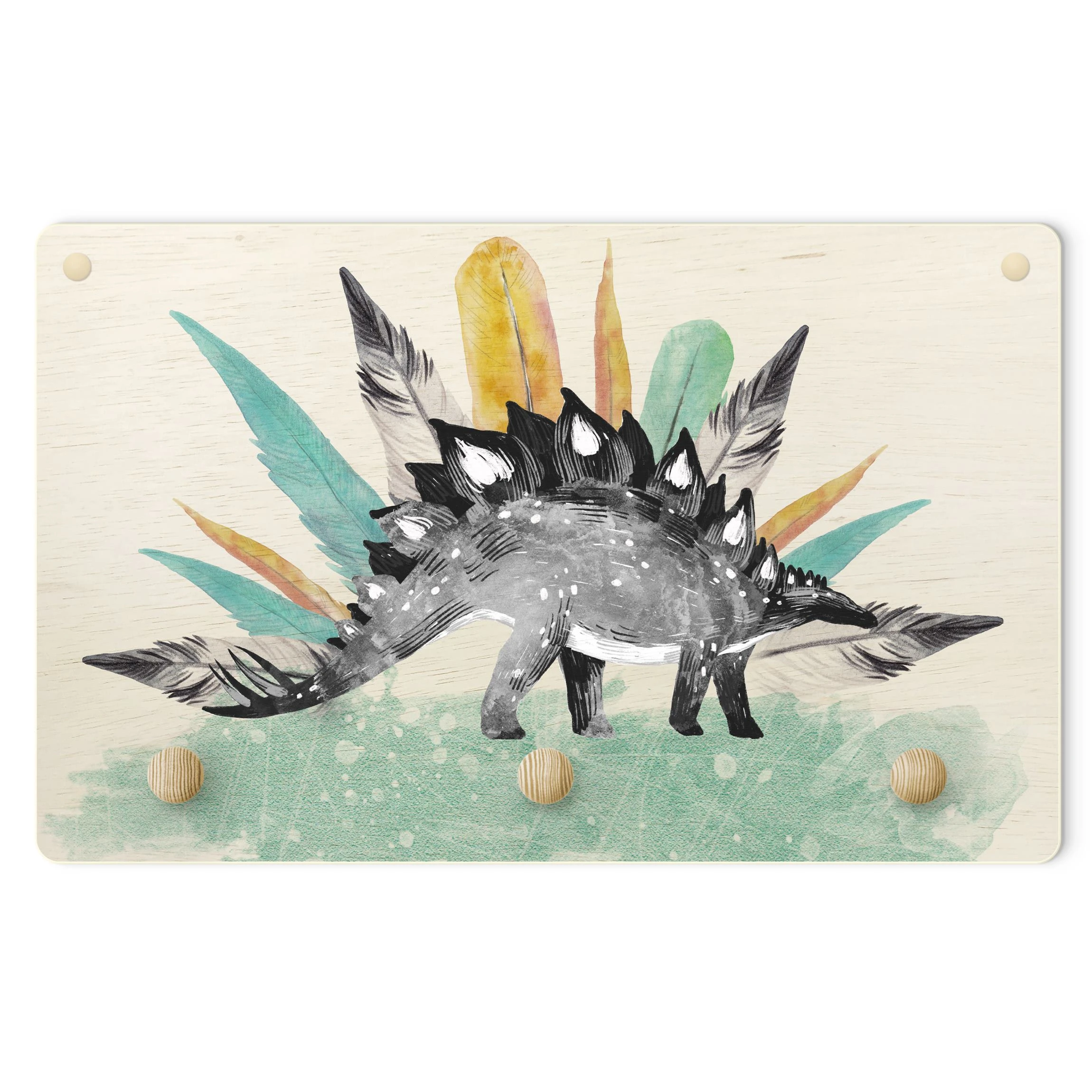 WallArt Kindergarderobe Holz – Stegosaurus Mit Federkrone In Bunt