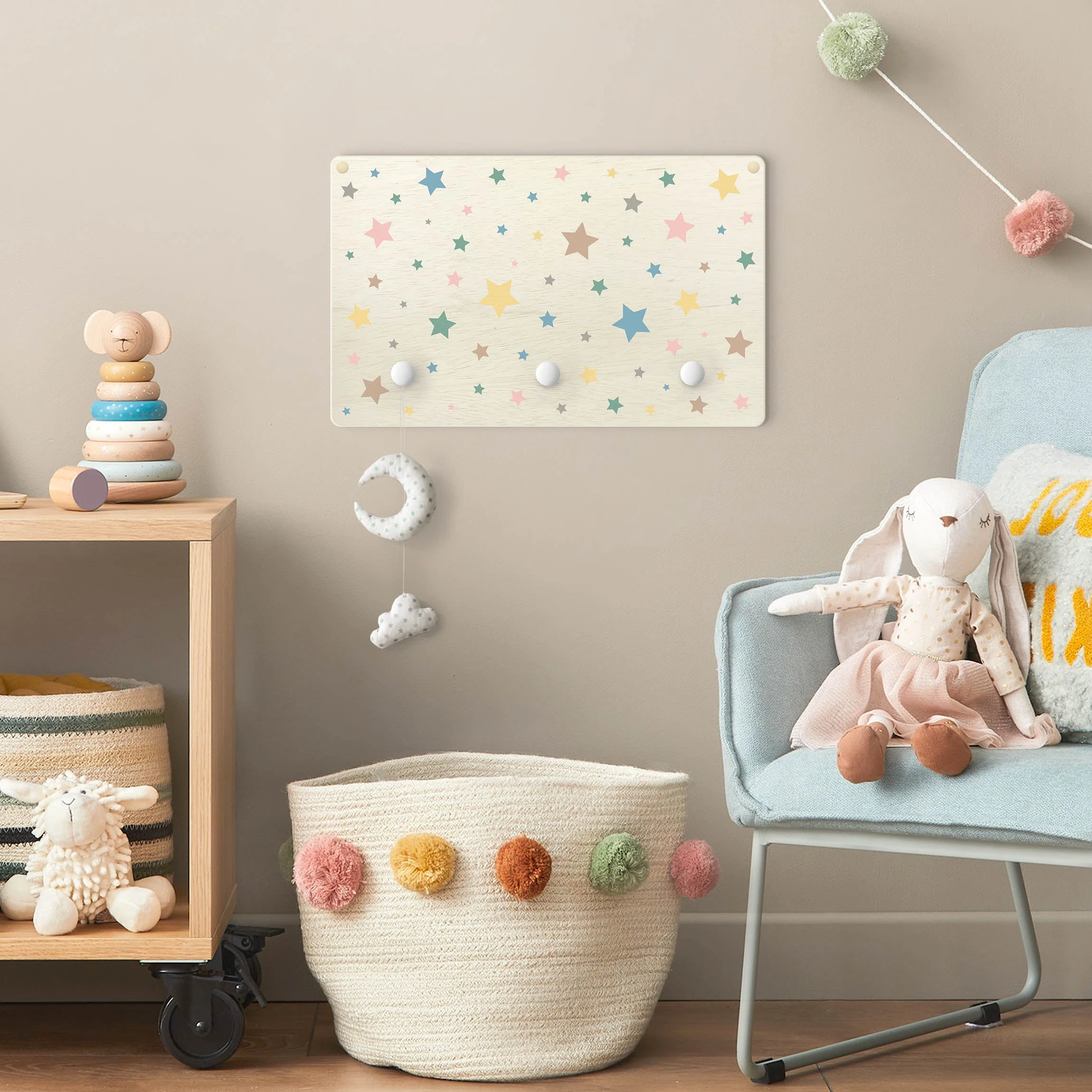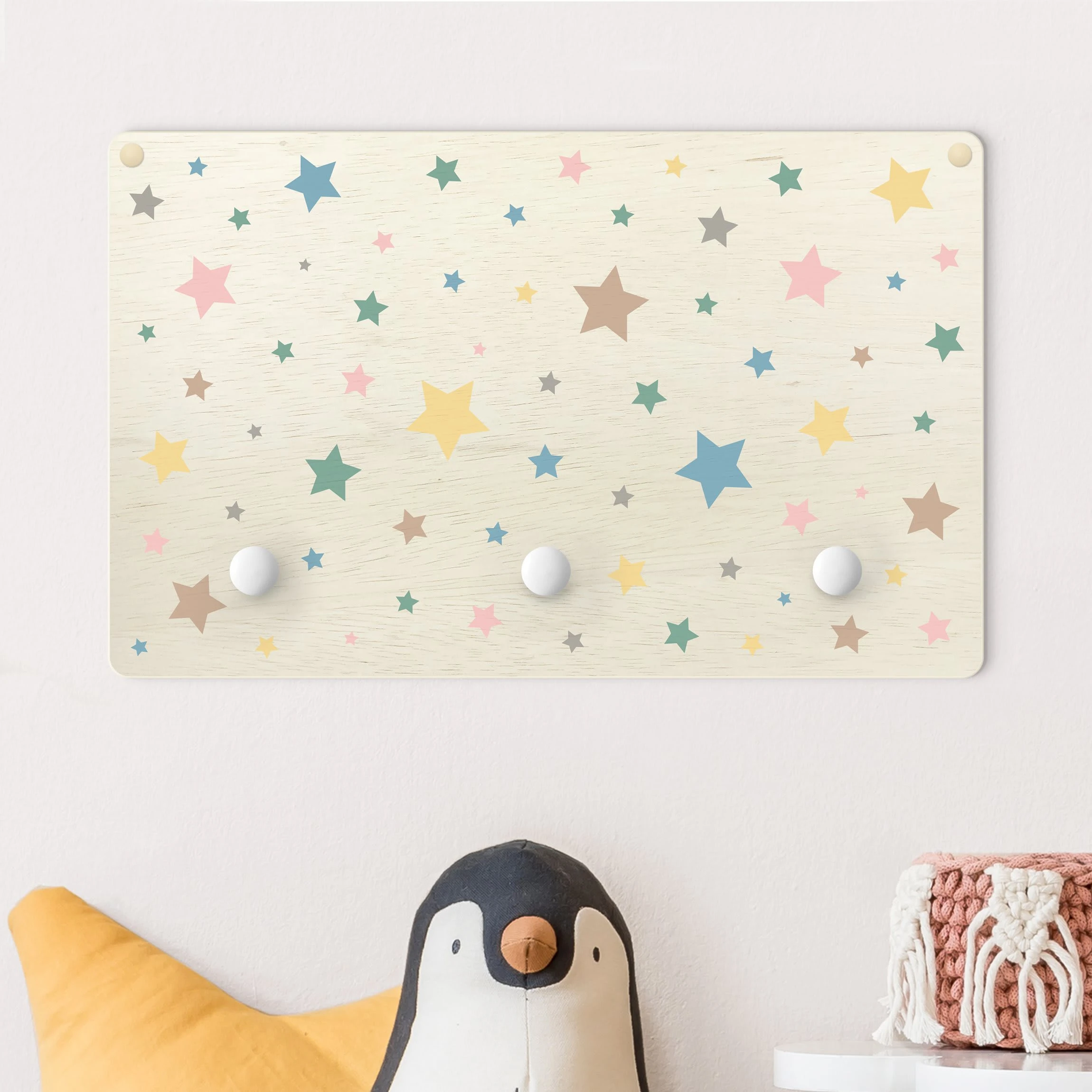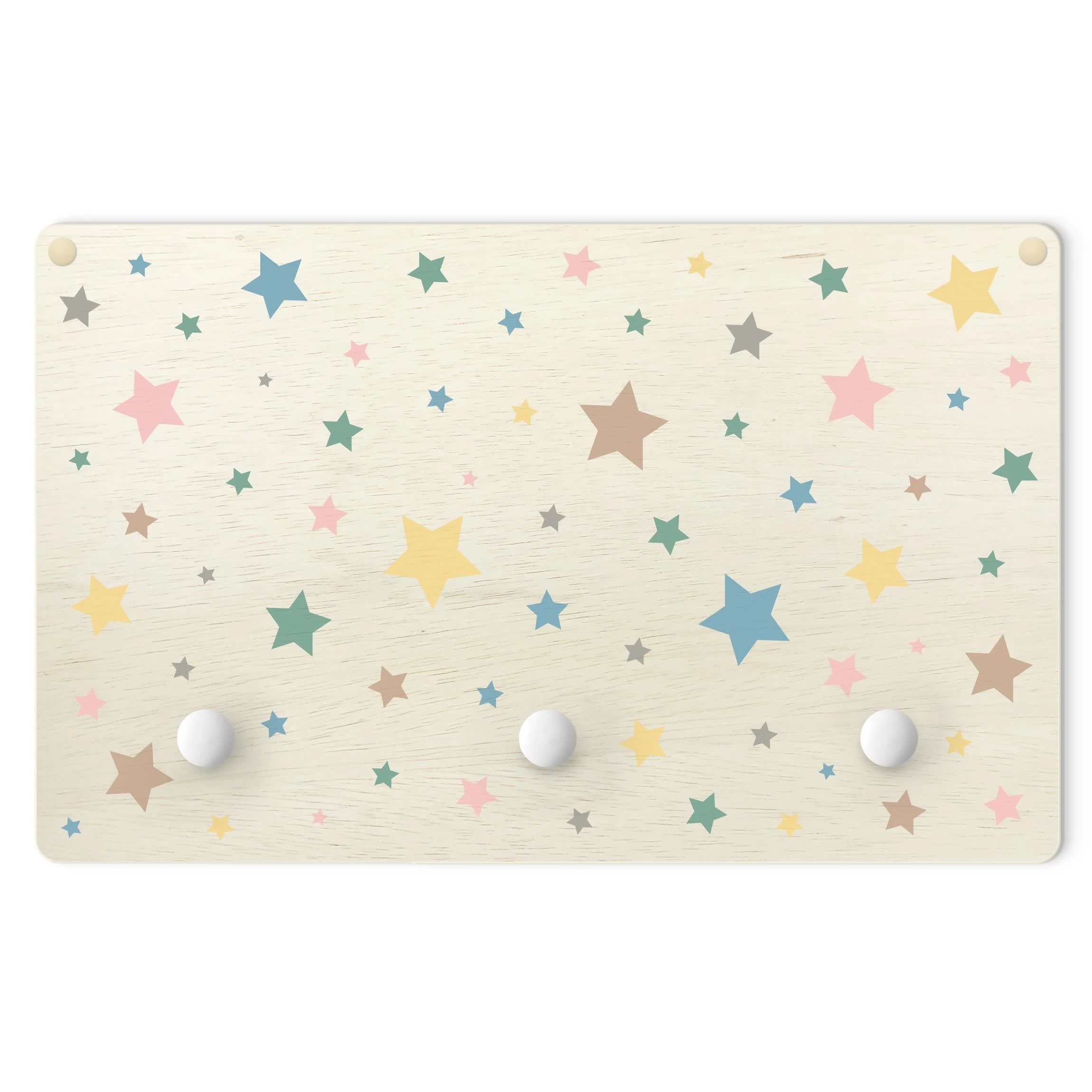 WallArt Kindergarderobe Holz – Sterne In Kunterbunt In Bunt