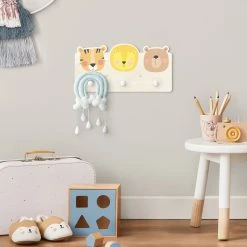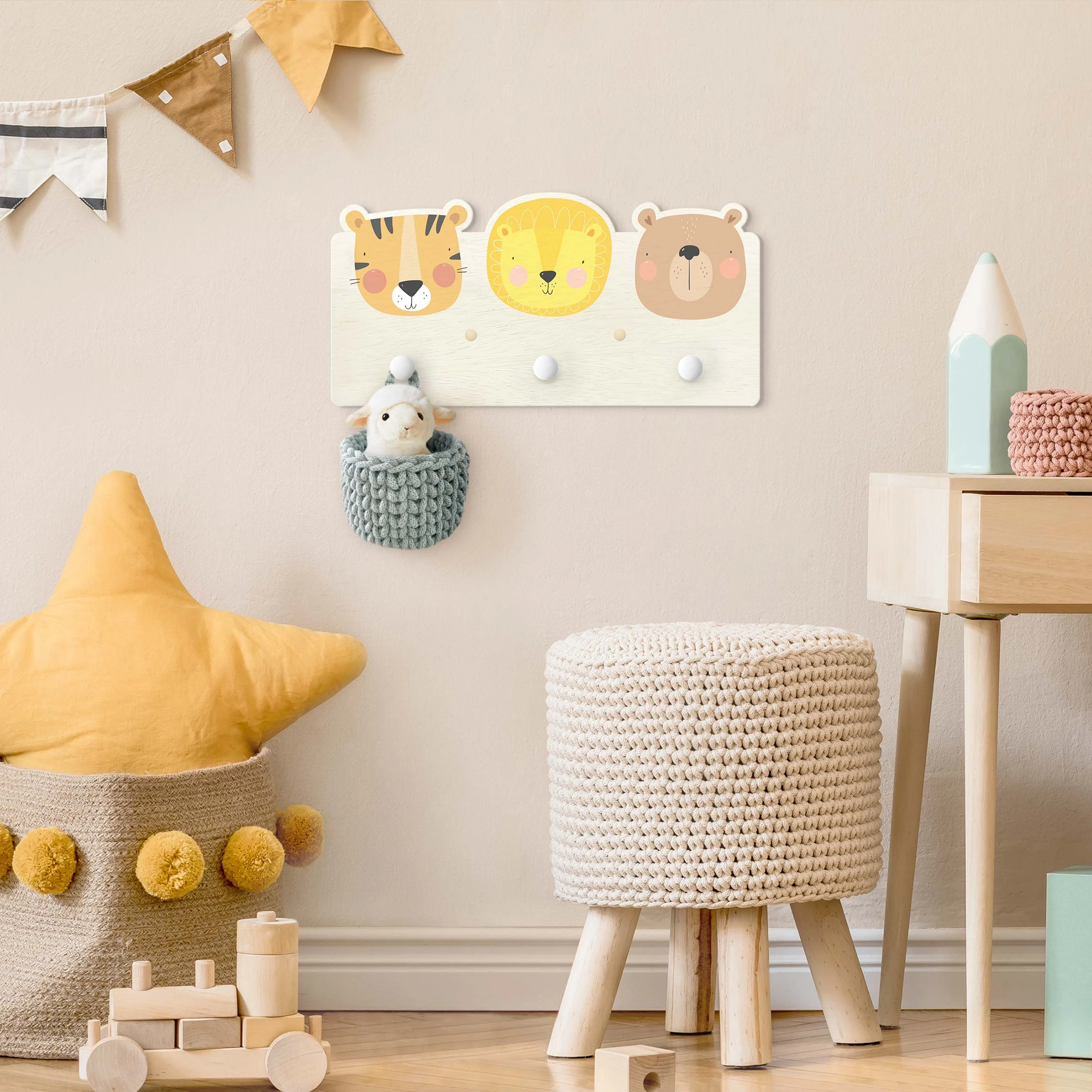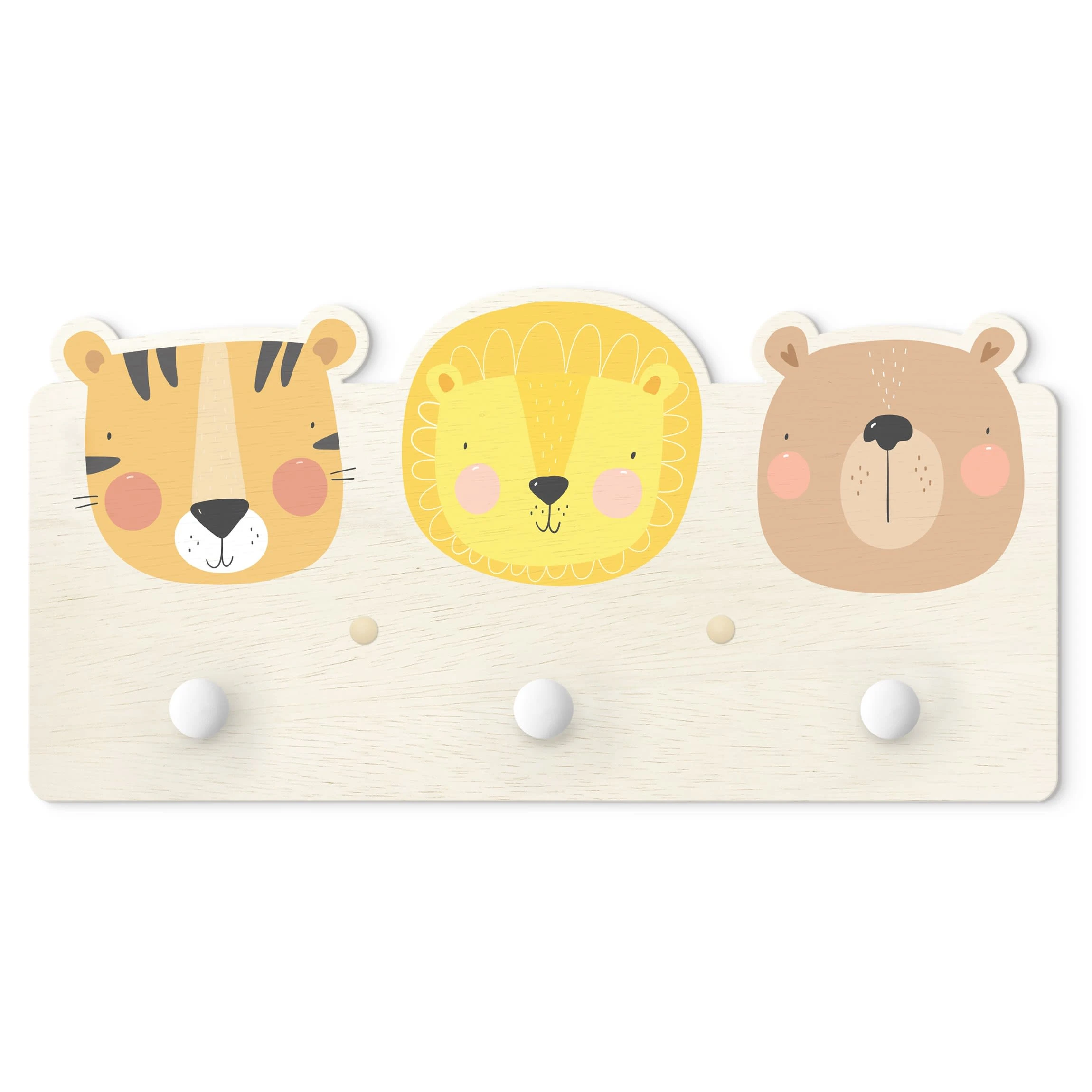 WallArt Kindergarderobe Holz – Süßer Zoo – Tiger Löwe Und Bär In Grün